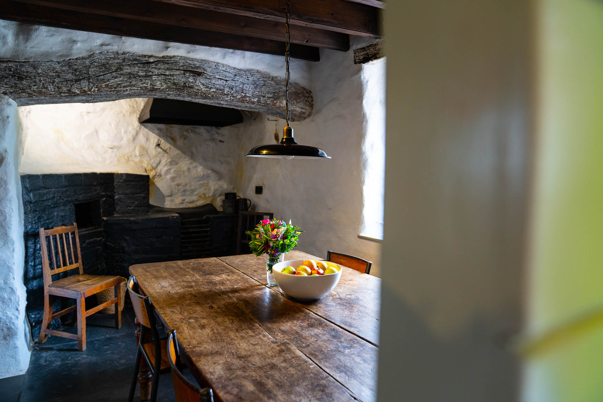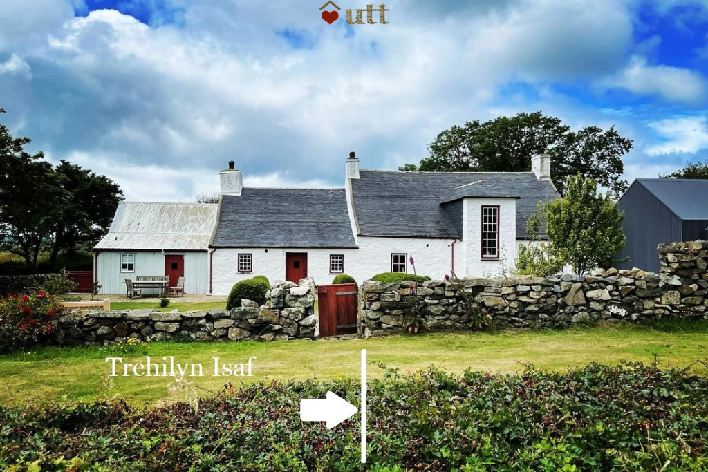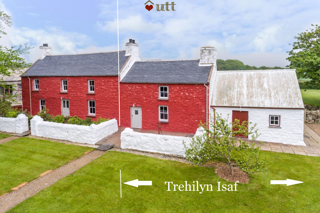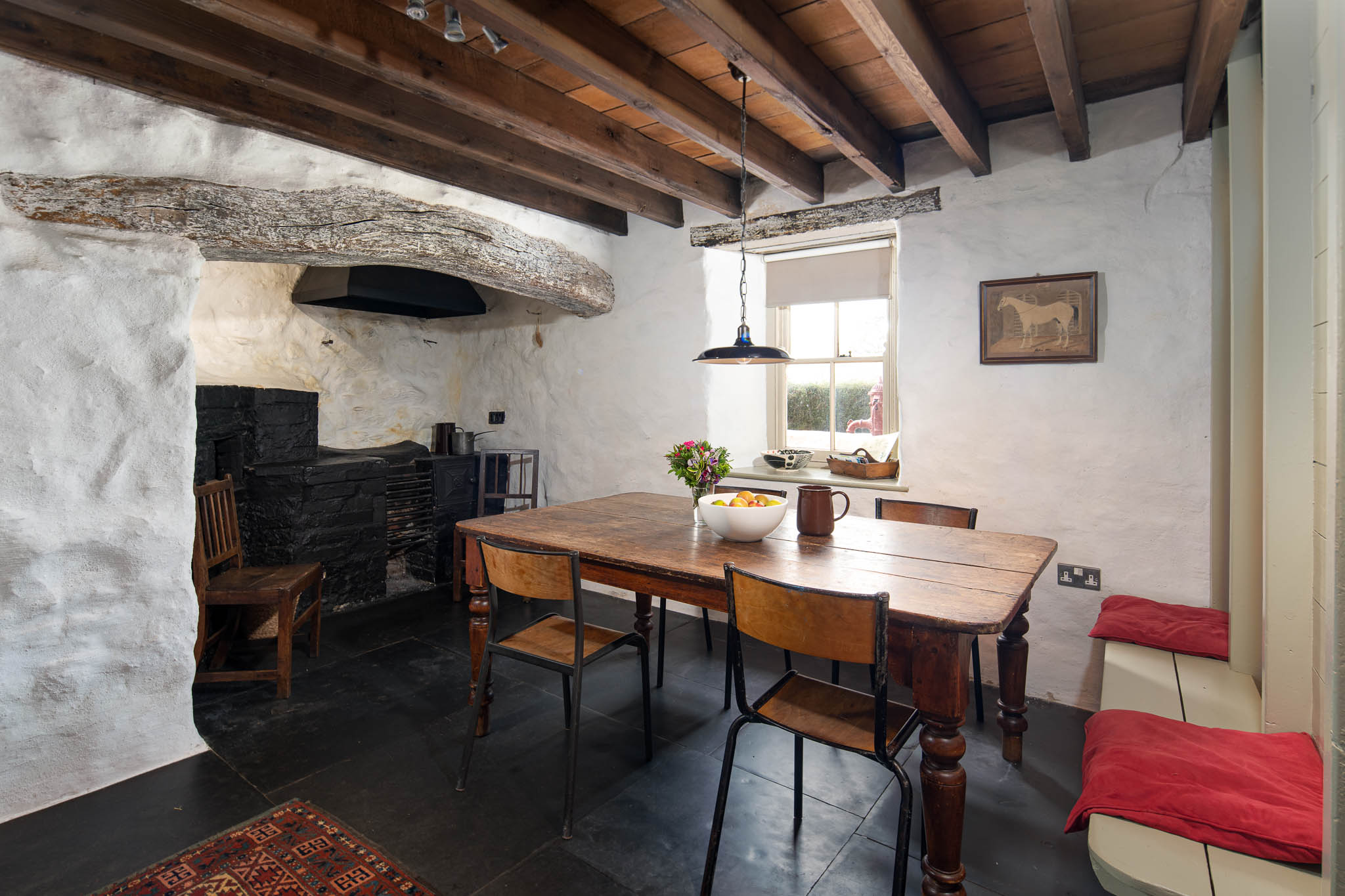 Kitchen - well equipped with usual appliances, e.g. dishwasher, microwave etc. Nespresso machine and a cafetière. Access to rear gardens - one of four doors to the property (two front, two rear), so you are never far from the wonderful outside space and fields. Cegin Fawr - traditional ingle-nook room with dining area - large country table sits 8 easily. Dresser etc. Lounge with contemporary wood burner, and direct access to the front and rear gardens. The first basket of logs is supplied. TV (not smart enabled) & DVD player. Sofa and tub chairs, stairs up to croglofft over. Bathroom and toilet to ground floor (bath, no shower). Small 'Utility' area with washing machine and dryer. Master bedroom (up steep stairs, gated at top), double bed (great mattress) etc with en-suite shower-room off (chrome heated towel rail etc). Large shower cubicle. Croglofft bedroom (up steep stairs, gated at top, low headroom in parts) - best suited to kids, this has two good single beds, and overlooks the main lounge via a balcony. Good quality mattresses. Centrally heated throughout (Carbon Neutral eco-heating system), with underfloor heating Note that there are steep open-tread stairs up to both bedrooms (gated at top), so this cottage won't be suitable for the infirm. This house is semi-detached with Trehilyn Uchaf, and if they are taken together an internal door between the kitchens can be opened to use them as one house. Outside:
