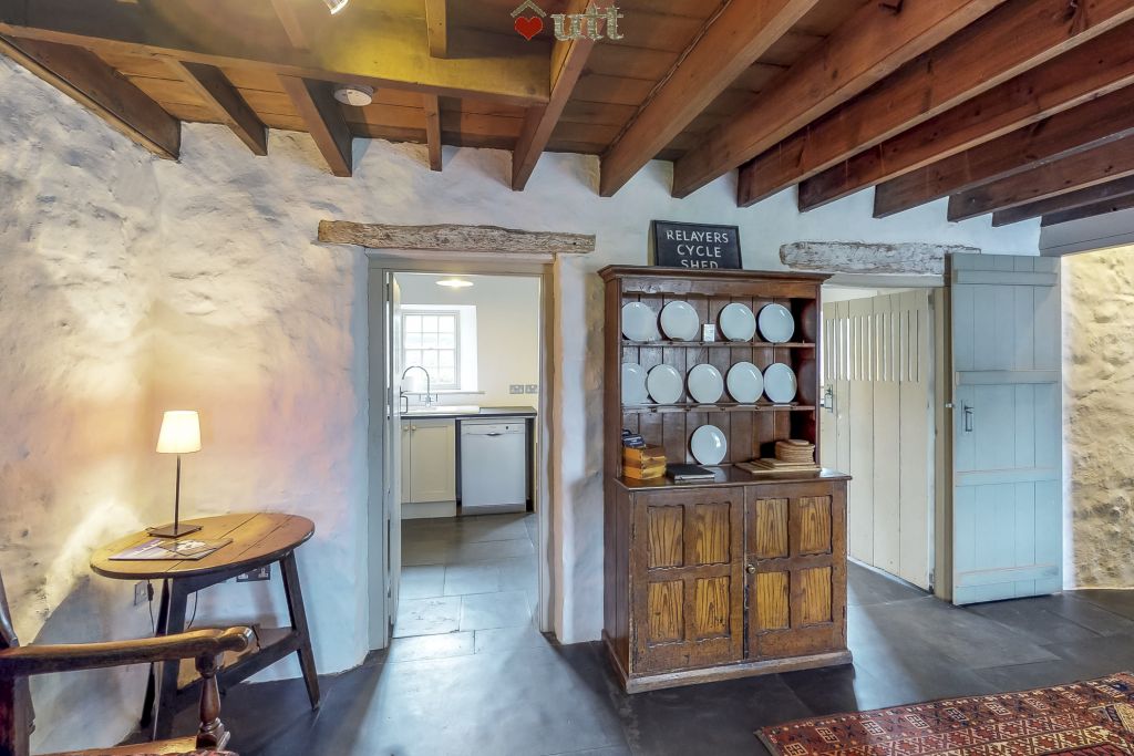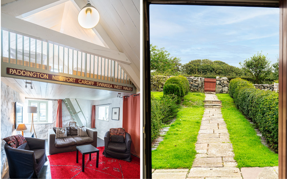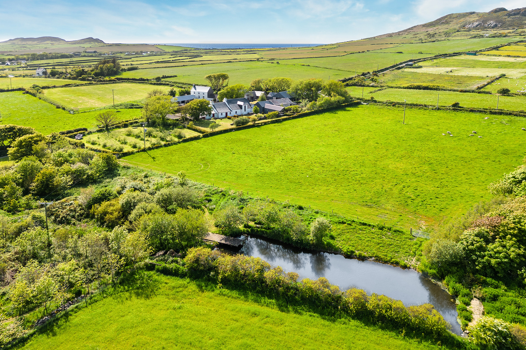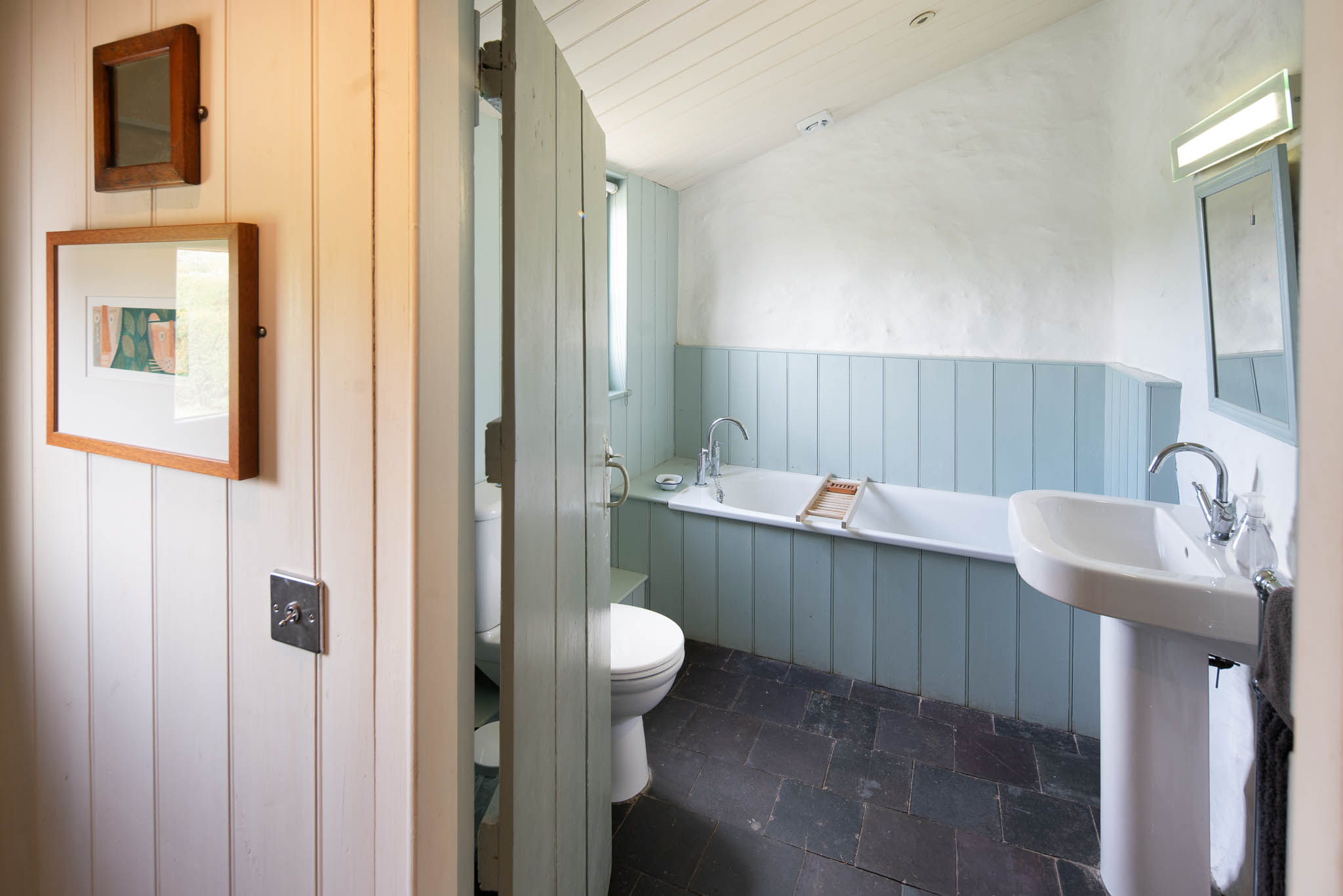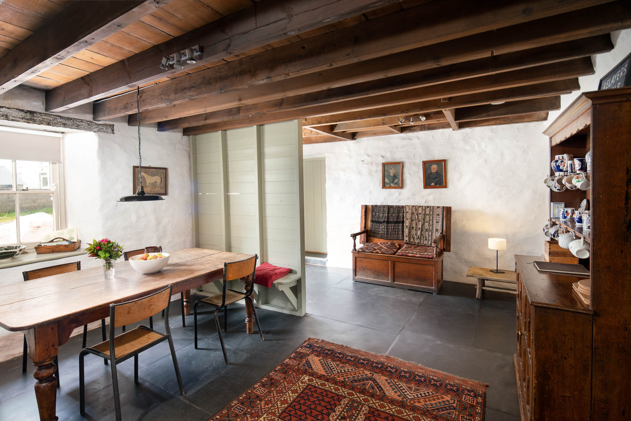 Kitchen - well equipped with usual appliances, e.g. dishwasher, microwave etc. Nespresso machine and a cafetière. Access to rear gardens - one of four doors to the property (two front, two rear), so you are never far from the wonderful outside space and fields. Cegin Fawr - traditional ingle-nook room with dining area - large country table sits 8 easily. Dresser etc. Lounge with contemporary wood burner, and direct access to the front and rear gardens. The first basket of logs is supplied. TV (not smart enabled) & DVD player. Sofa and tub chairs, stairs up to croglofft over. Bathroom and toilet to ground floor (bath, no shower). Small 'Utility' area with washing machine and dryer. Master bedroom (up steep stairs, gated at top), double bed (great mattress) etc with en-suite shower-room off (chrome heated towel rail etc). Large shower cubicle. Croglofft bedroom (up steep stairs, gated at top, low headroom in parts) - best suited to kids, this has two good single beds, and overlooks the main lounge via a balcony. Good quality mattresses. Centrally heated throughout (Carbon Neutral eco-heating system), with underfloor heating Note that there are steep open-tread stairs up to both bedrooms (gated at top), so this cottage won't be suitable for the infirm. This house is semi-detached with Trehilyn Uchaf, and if they are taken together an internal door between the kitchens can be opened to use them as one house. Outside: