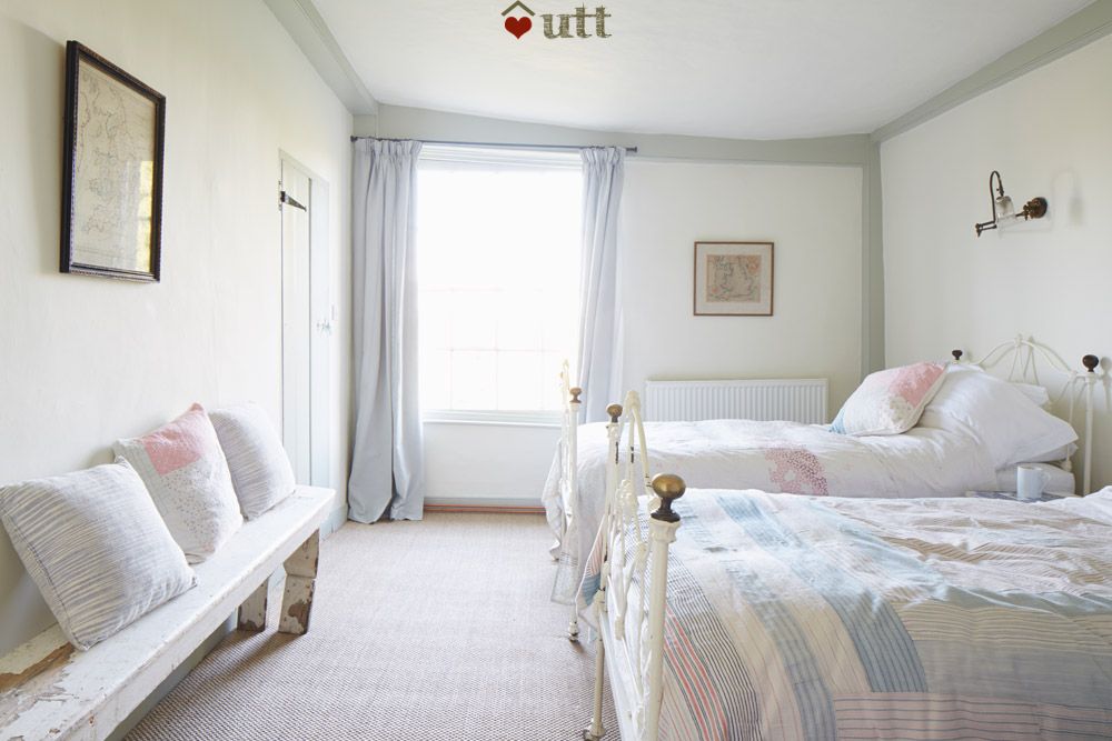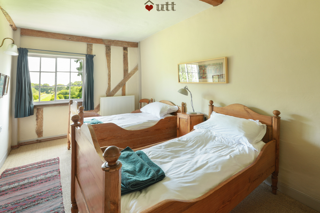 - Pretty twin bedroom with iron beds and patchwork quilts, ensuite shower room and loo