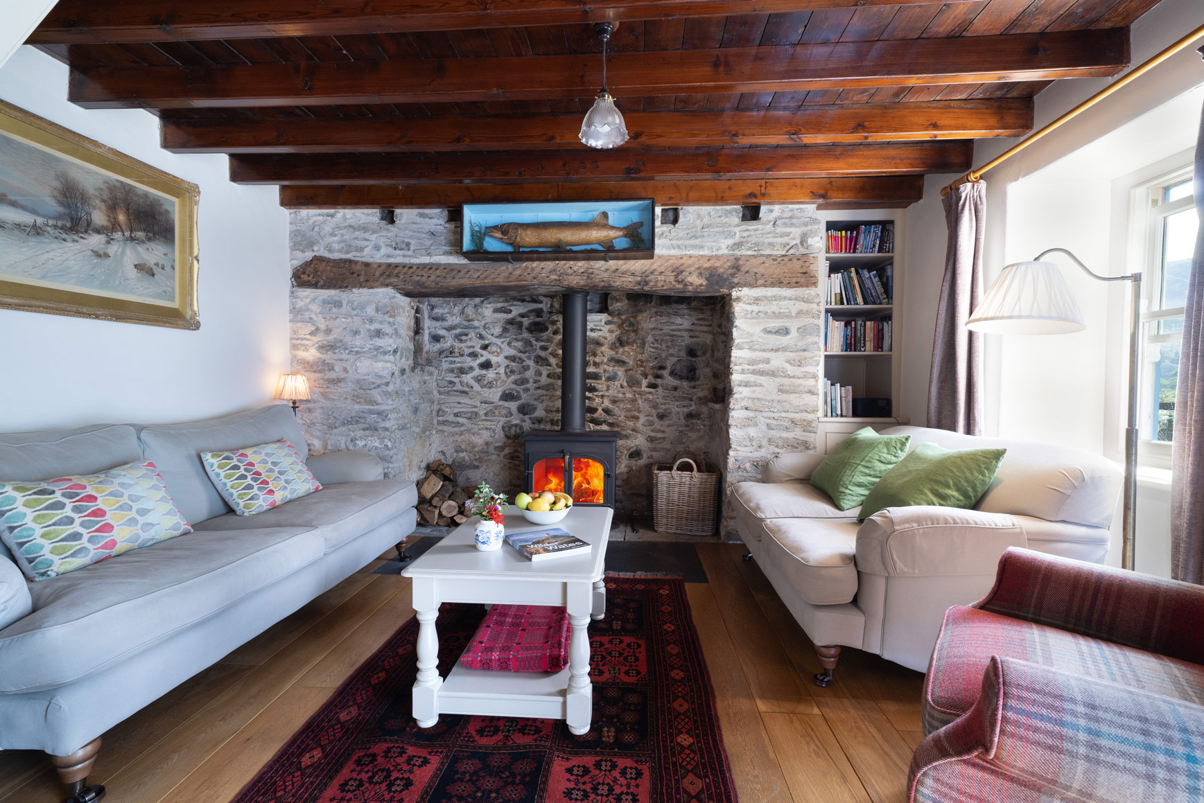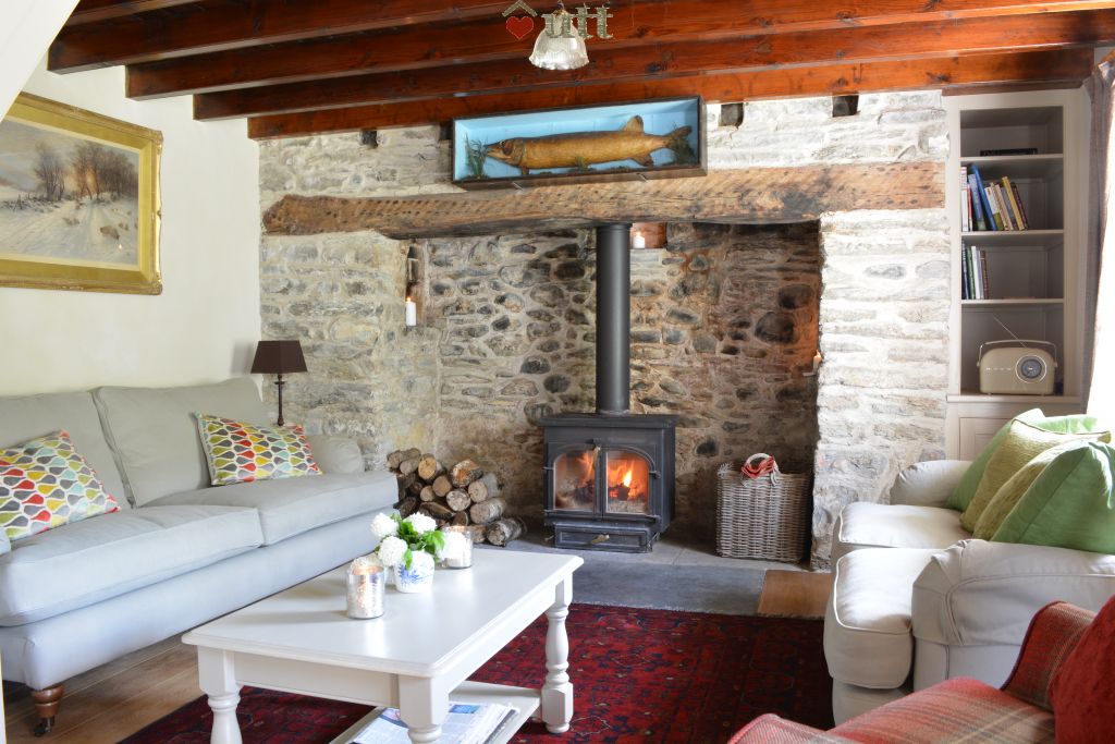 - Large inglenook fireplace and bread oven. Clearview wood burning stove (wood provided). 3 seater settee, 2 seater settee and arm chair. Traditional Welsh dresser, two seater settle and chair. Stowable smart TV DVD/Bluray player and bluetooth (wireless) speaker. A selection of books, maps and games are provided.