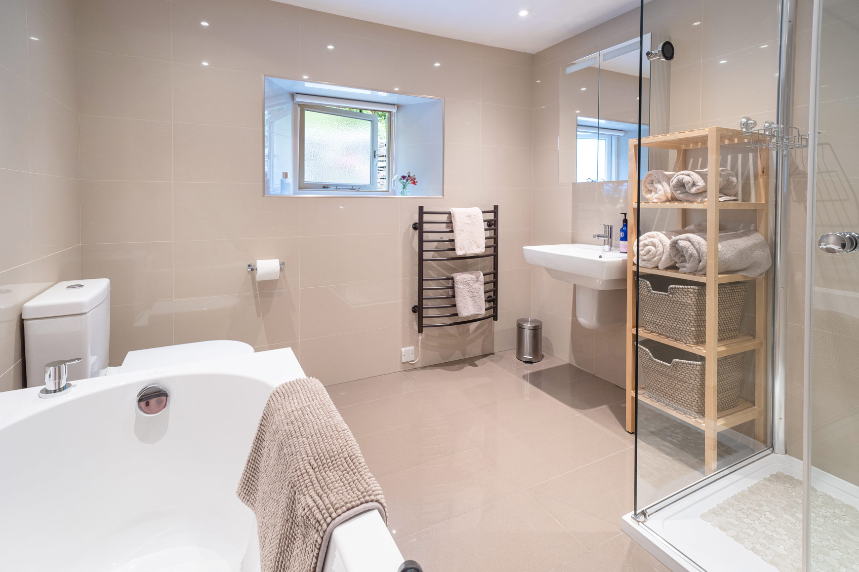 - Spacious,fully tiled Villeroy & Boch bathroom with bath and separate large shower and heated towel rail.