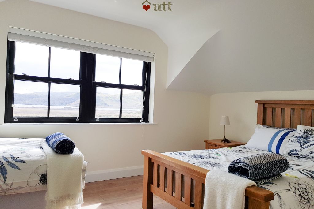 Perched above Lough Mask this stylish, spacious home has sensational views from every angle. It's a really great location on the County Mayo/ County Galway border with easy access to the best of both counties. Take a cruise on nearby Killary Fjord, beaches that look like the Bahamas (west Mayo), head down into Connemara or North to Westport (one of Ireland's nicest towns), South to attractive Cong (where they filmed 'The Quiet Man' film) etc. You've got a modern, comfortable home in a rural lake valley, within walking distance of good food and drink and within an hour of several of the most iconic landscapes in Ireland.