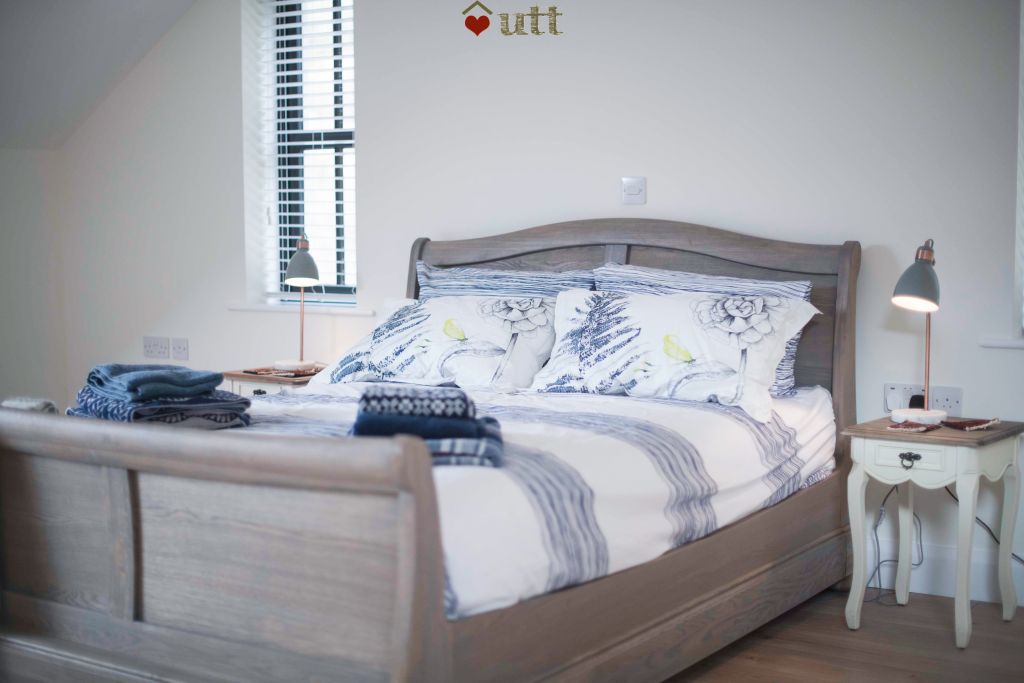 Master bedroom: king-size bed, armchair, fitted wardrobes, and an en-suite bathroom, rain forest shower, his and hers sinks.