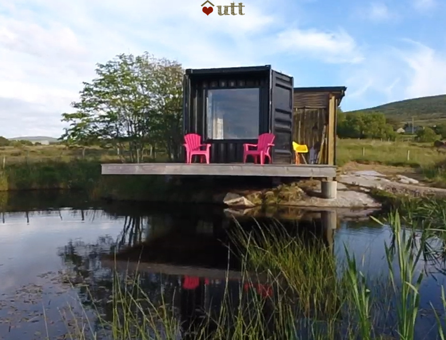We designed and built Frank and placed him on a rock on the edge of his own small coastal lake overlooking Traighenna Bay on Donegal's Wild Atlantic Way. We named him after Frank Lloyd Wright, an architect hero of ours who was interested (among other things) in testing structural cantilevers to their limit. That's exactly what we've done with Frank - cantilevering him out over the pool of wateras far as engineering allows -  our little piece of modernism on the Atlantic coast.