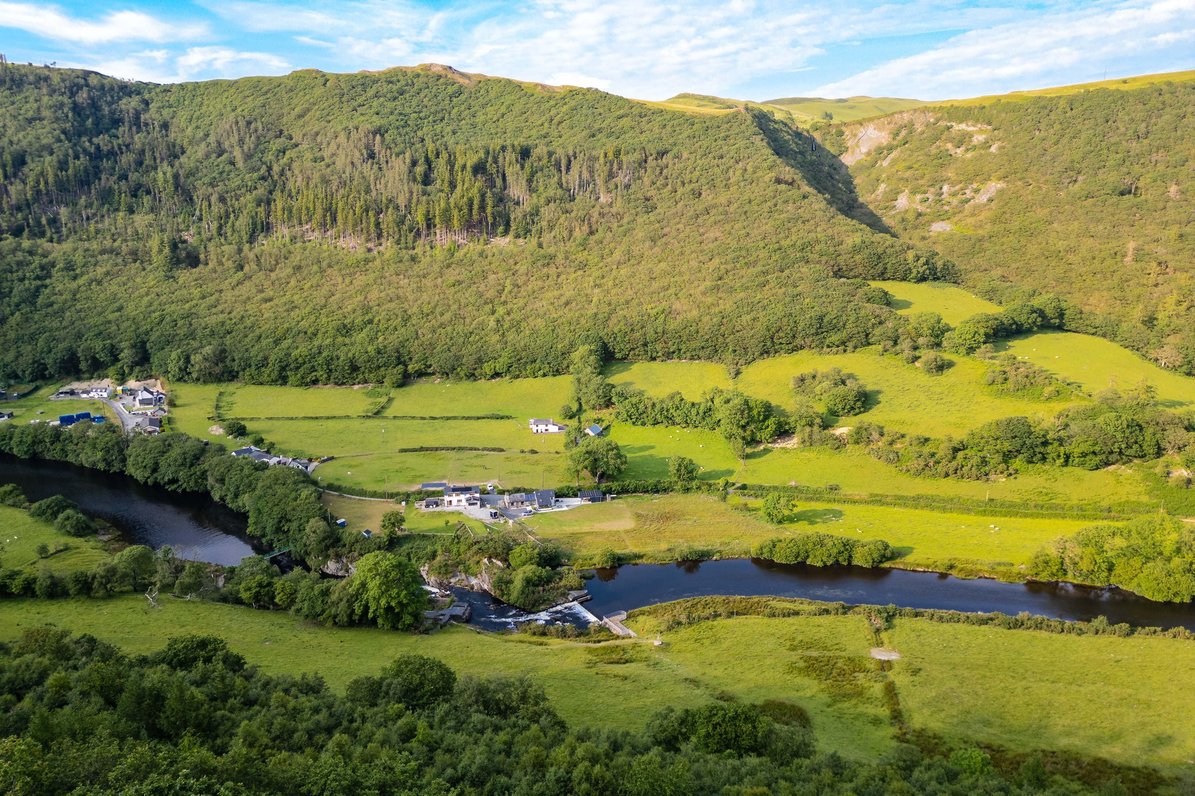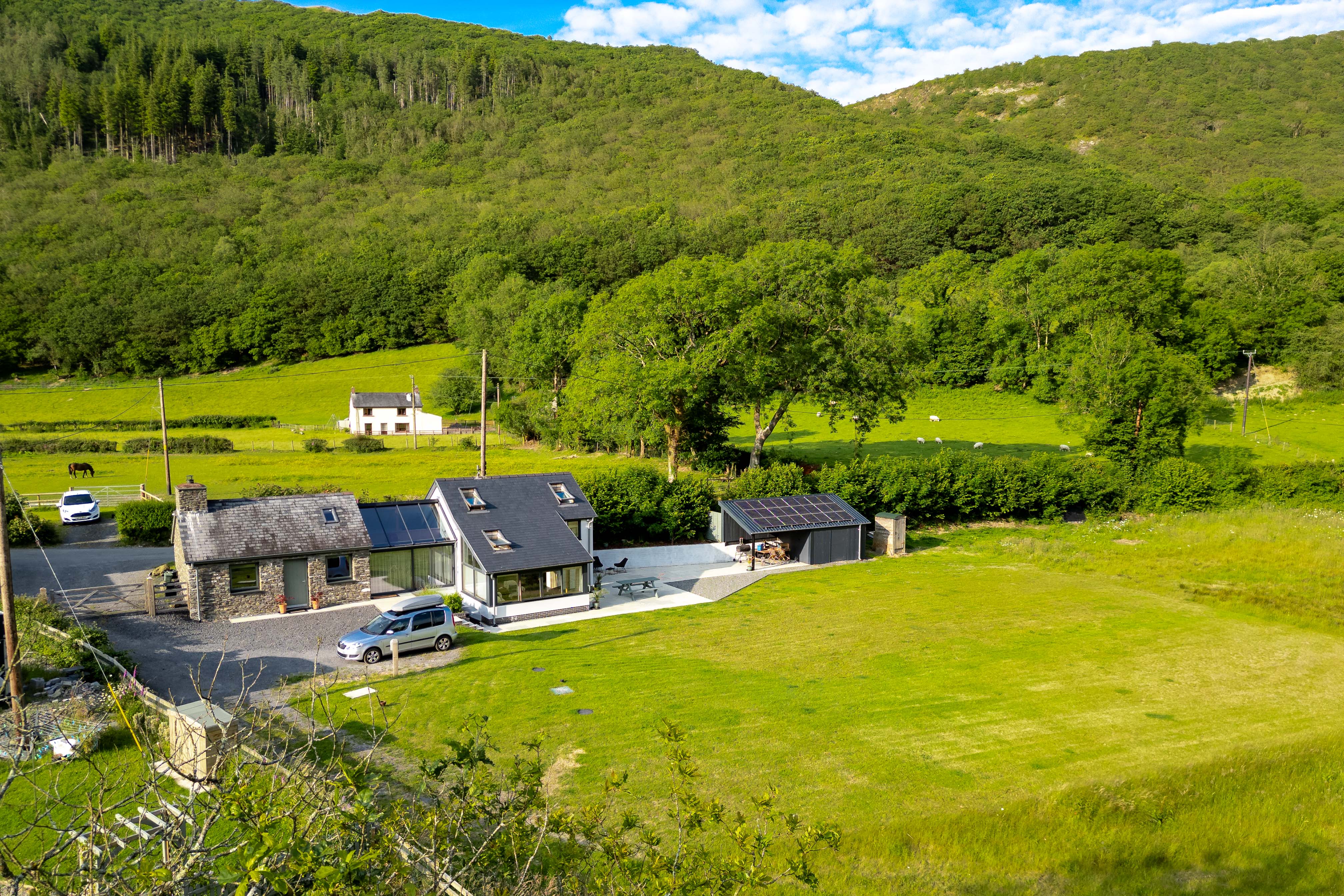 The peaceful Rheidol valley runs from  Pontarfynach / Devil's Bridge down to the sea at Aberystwyth, and at the prettiest point you'll find a series of waterfalls. Approximately in the middle of the numerous stages of falls you'll find Penffrwd Fach - a brand new riverfront property built to a high standard, and with sustainability at its heart.