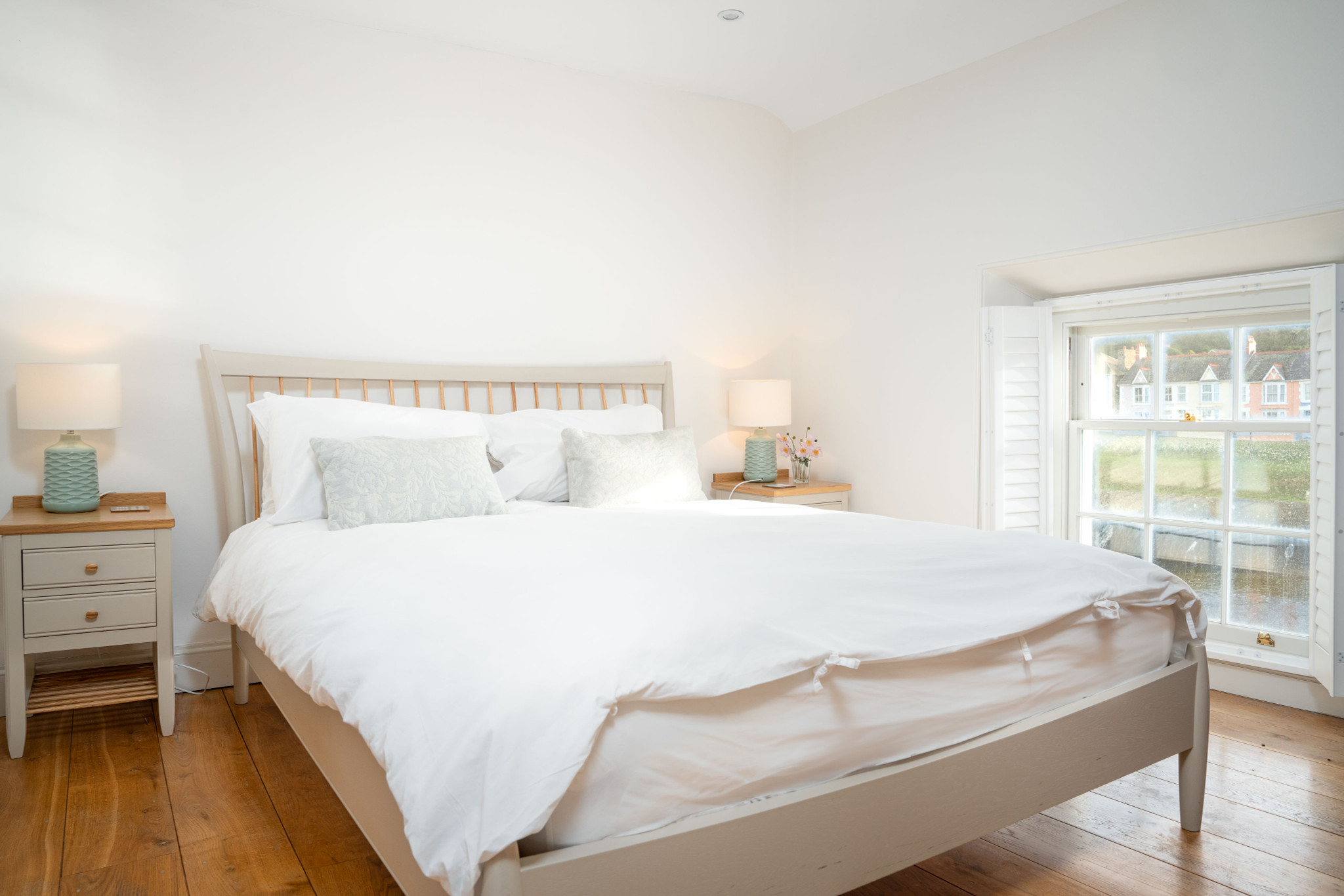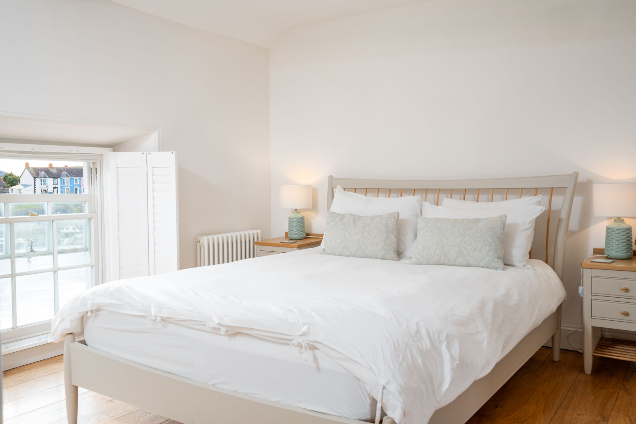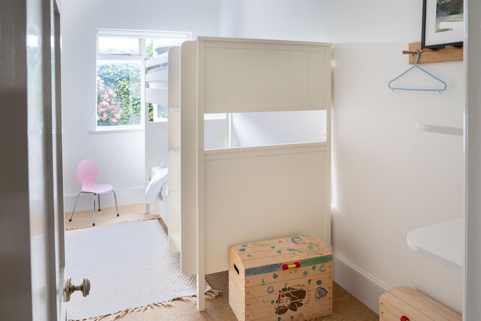 The living accommodation has been pushed to the first floor - so all three windows look out from the living room over the harbour, and a pair of large bedrooms (each en-suite) to the top floor. Downstairs has a snug and a large kitchen diner that leads to a sunny rear garden. There's also a ground-floor bunk bedroom with an adjacent shower room.