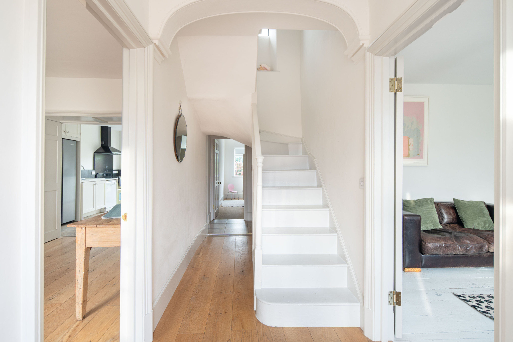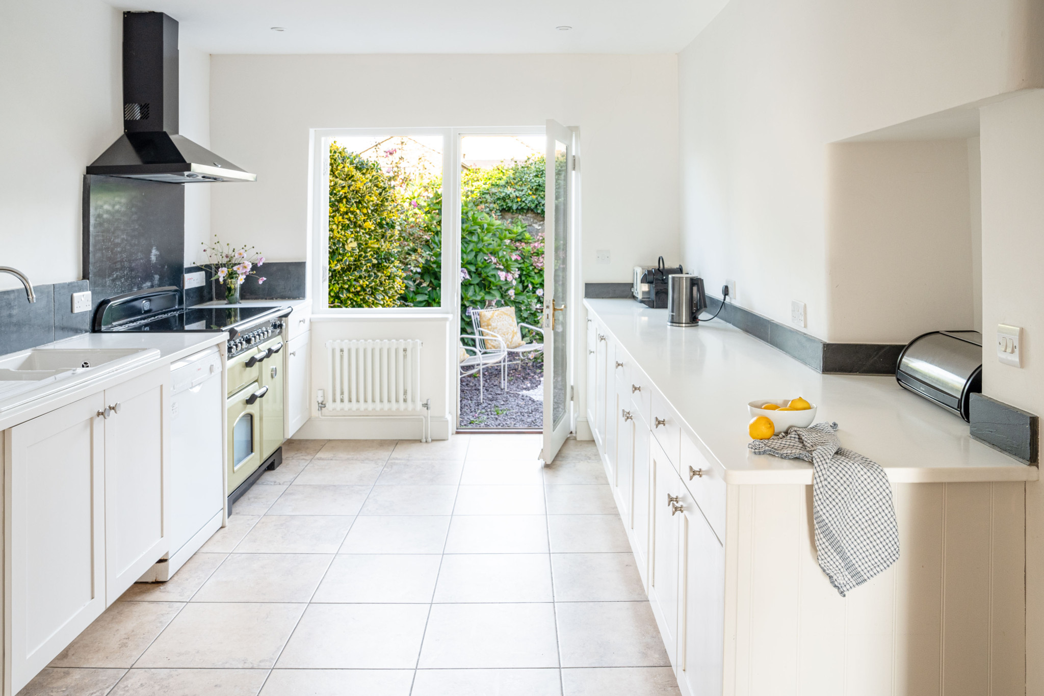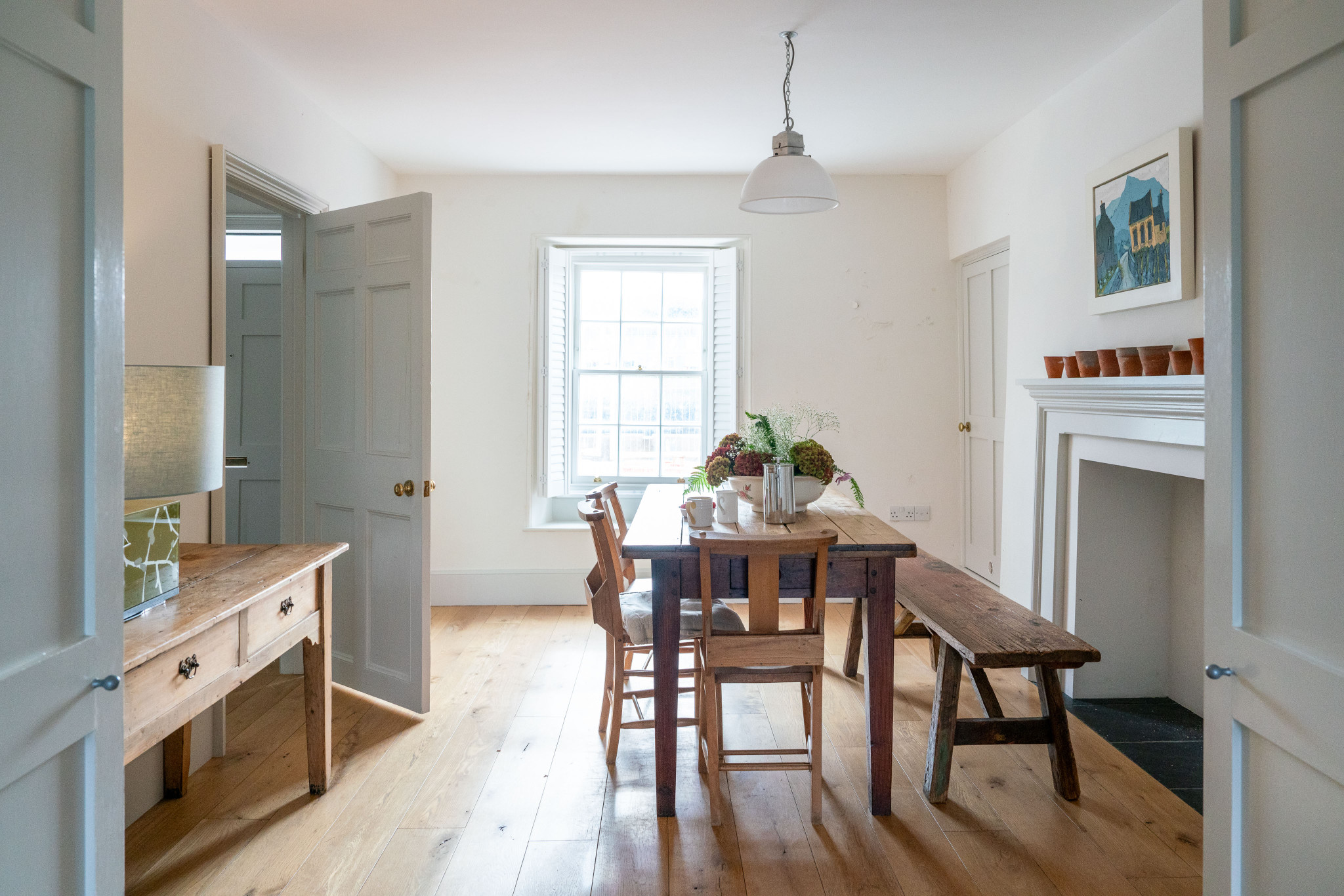 The living accommodation has been pushed to the first floor - so all three windows look out from the living room over the harbour, and a pair of large bedrooms (each en-suite) to the top floor. Downstairs has a snug and a large kitchen diner that leads to a sunny rear garden. There's also a ground-floor bunk bedroom with an adjacent shower room.