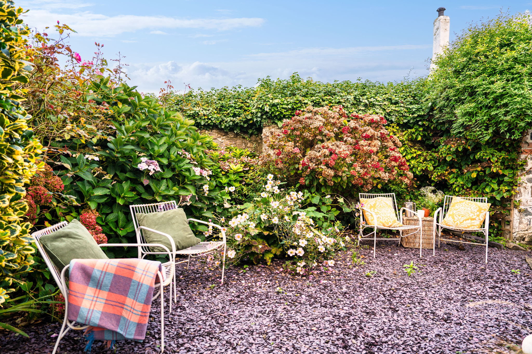 - Garden - the small rear garden gets sun and has been planted with shrubs. There are chairs and a small shed - the original WC!