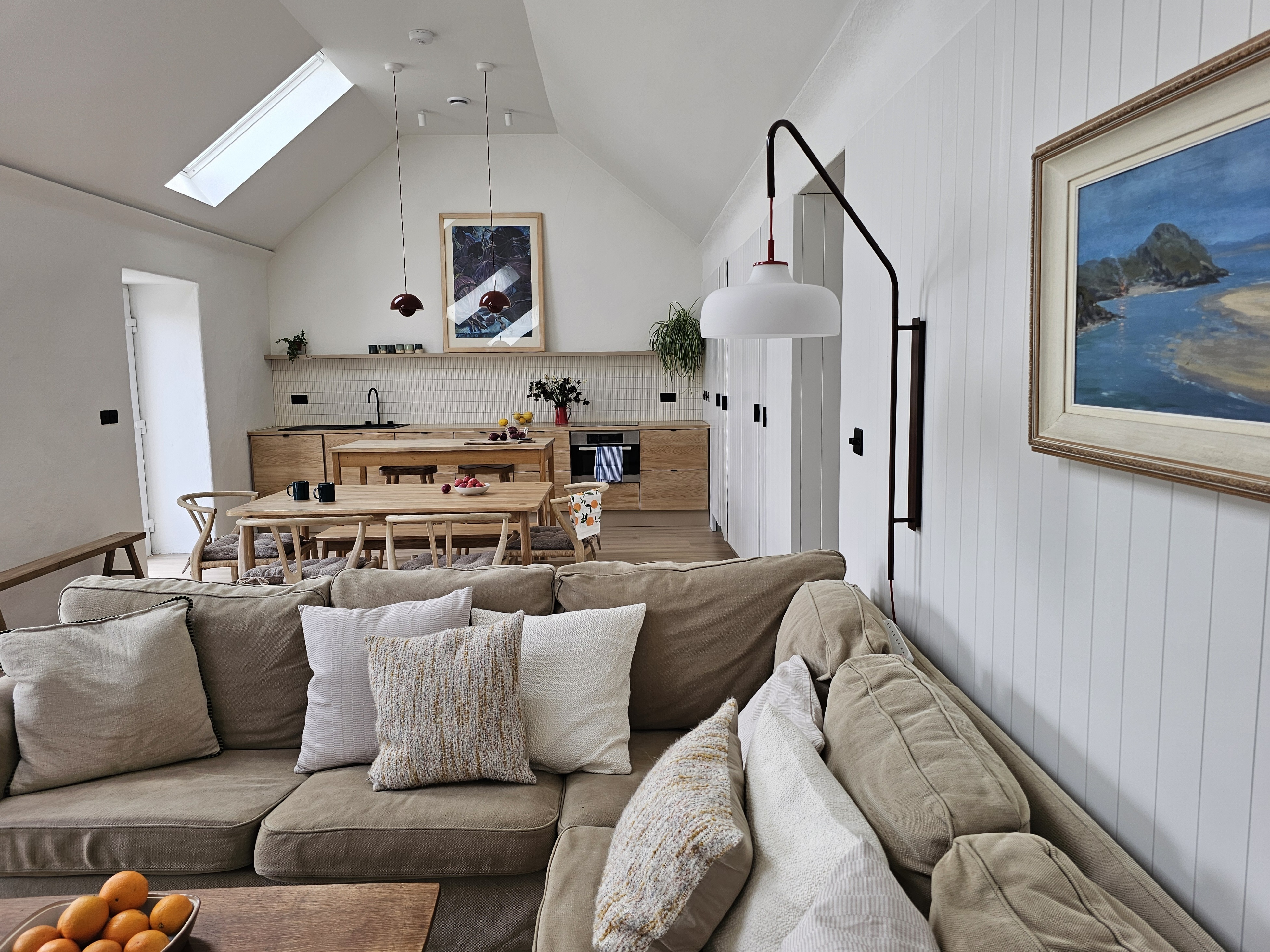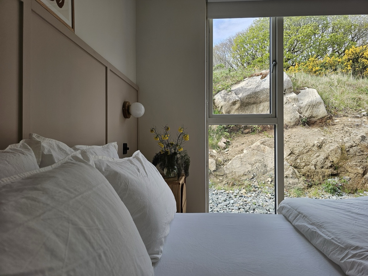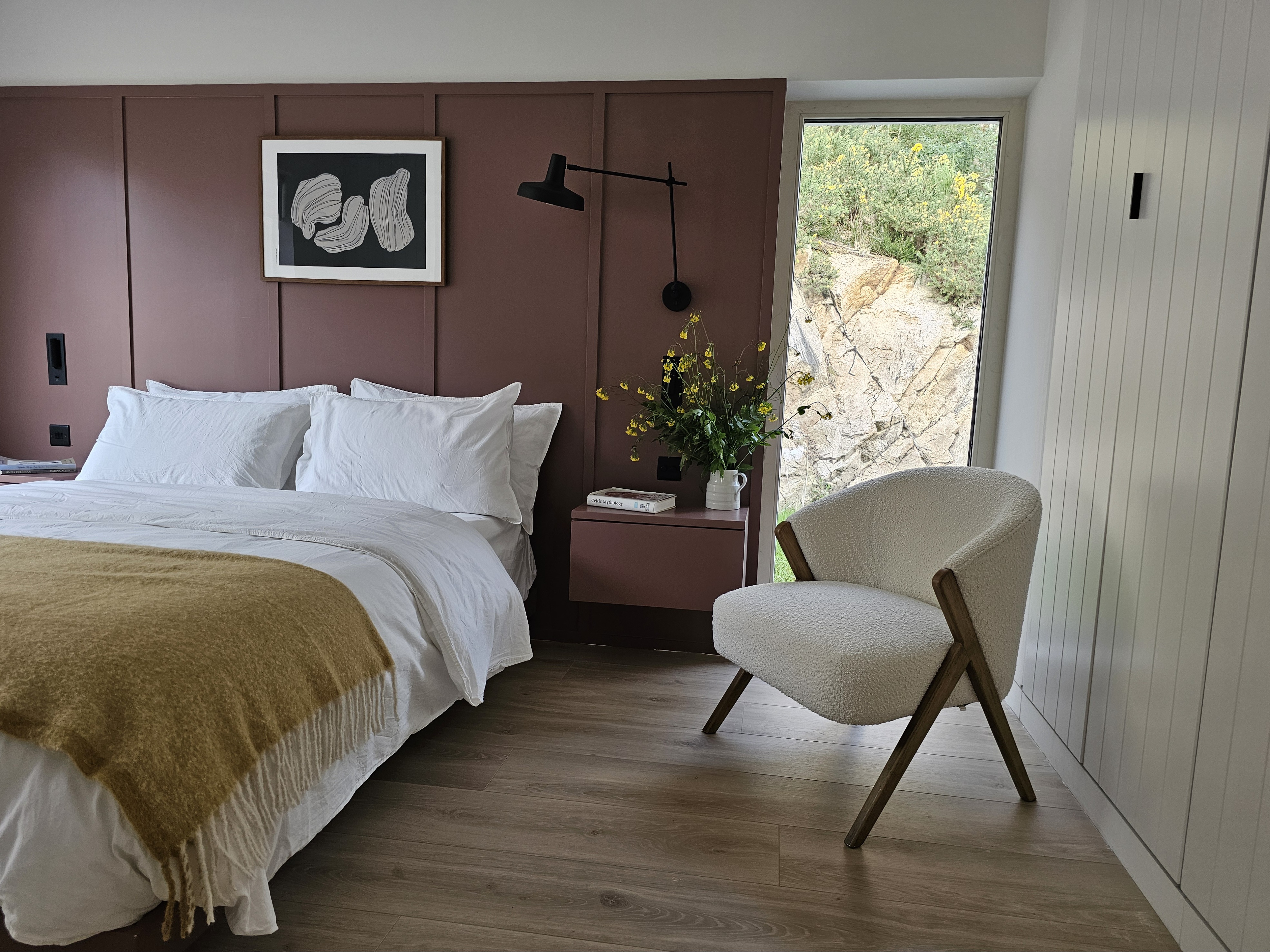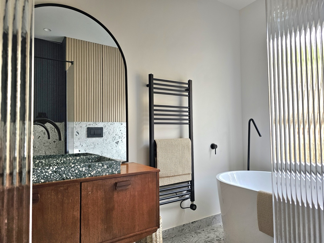 The house has a minimalist, almost Nordic feeling sparse interior with three well-sized bedrooms and two genuinely luxurious bathrooms.