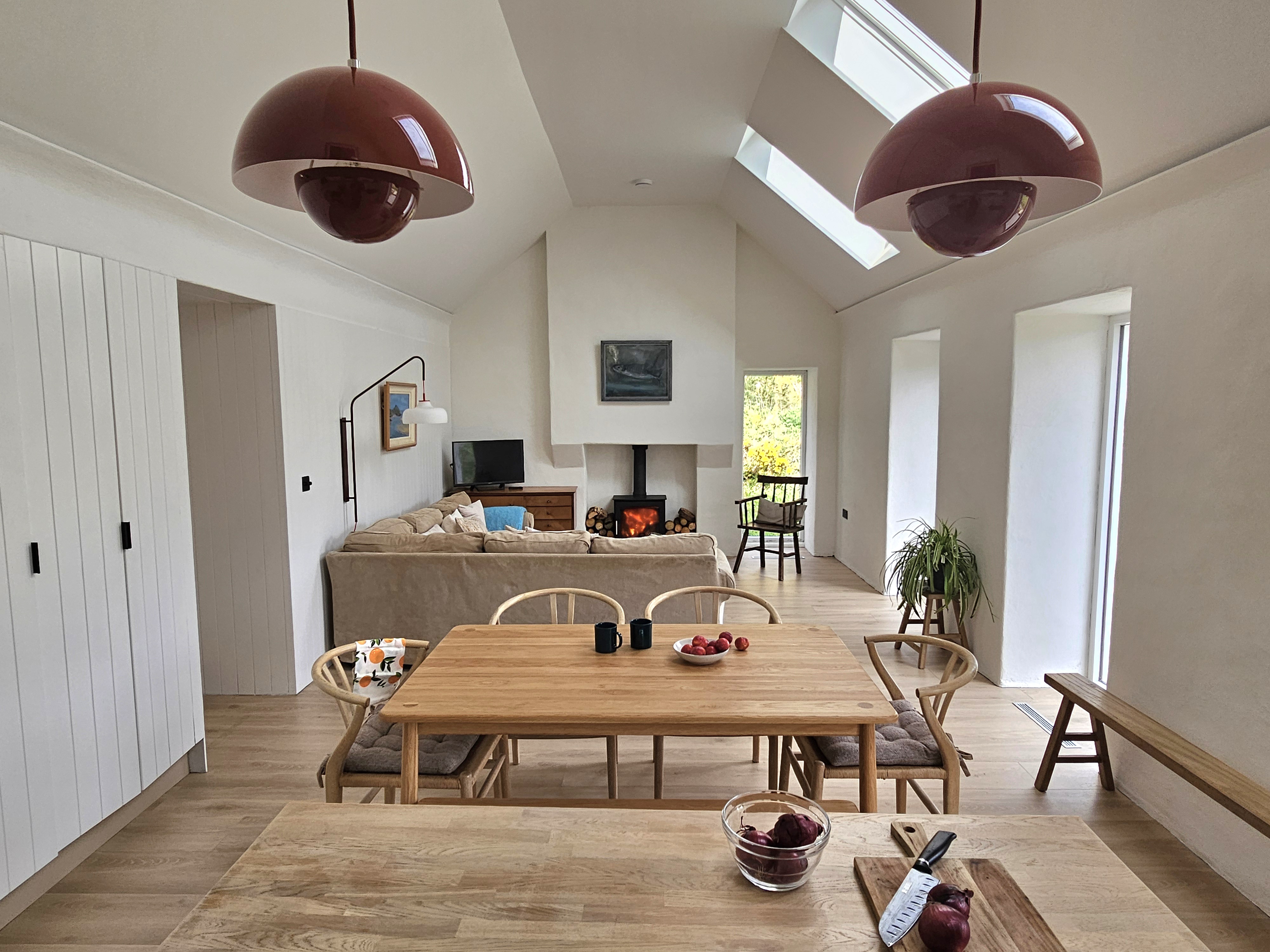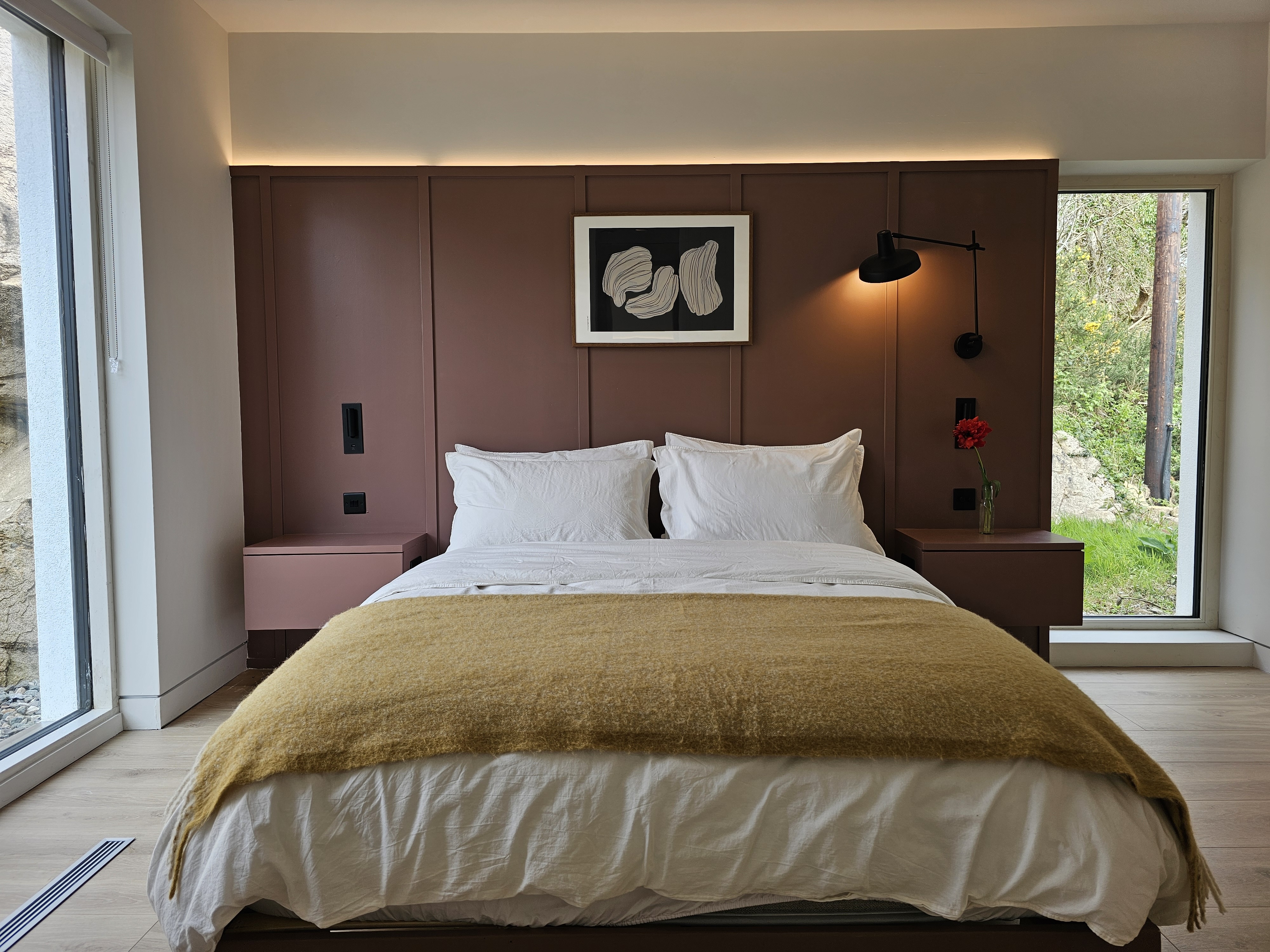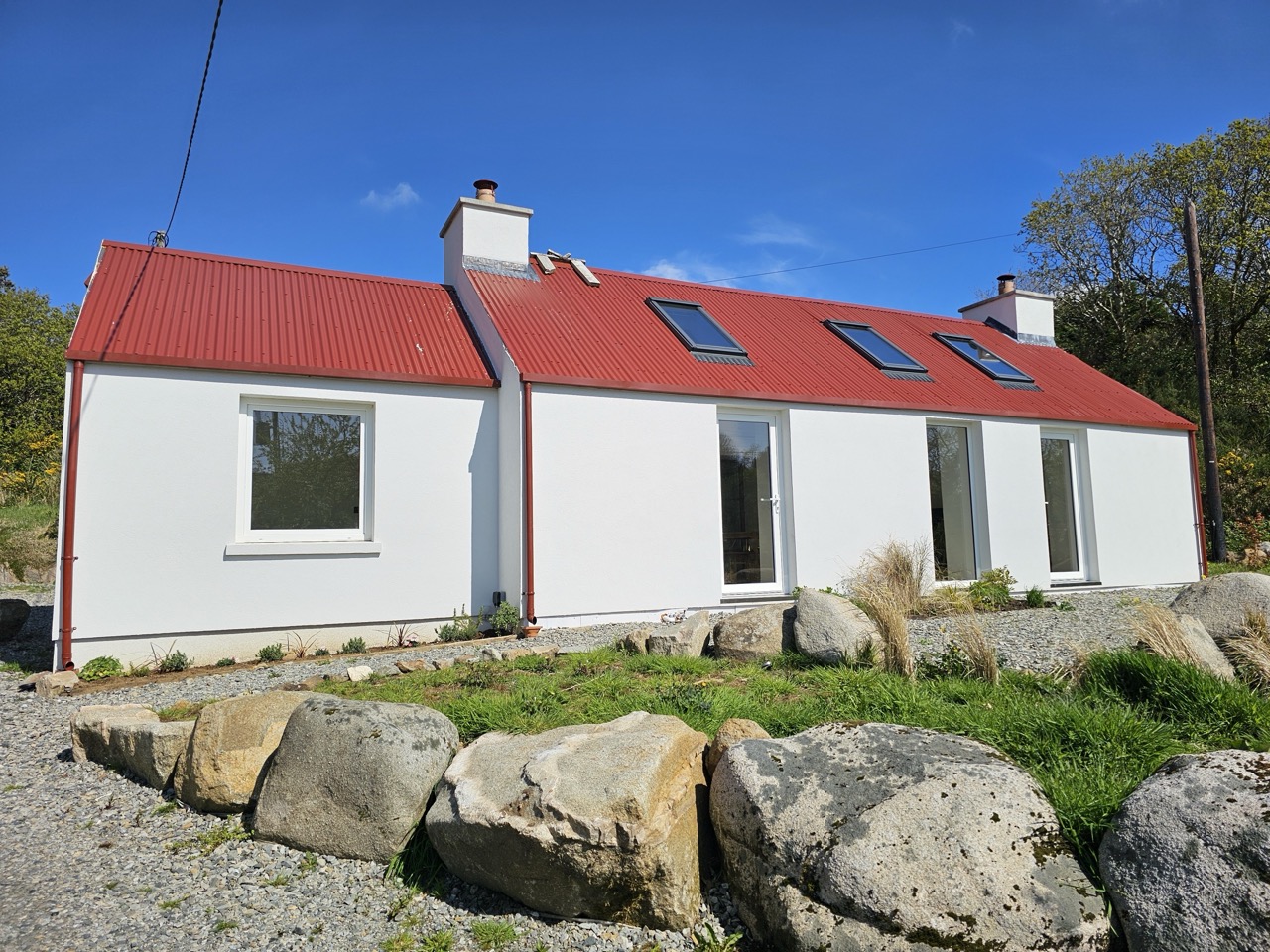 An Teach Dearg (The Red House) is a contemporary home that echoes the Donegal vernacular traditions through a modernist interpretation of the cottage form. It sits just 6 minutes drive from one of the most celebrated beaches in Ireland (Narin/ Portnoo) and has direct private shore access onto Lough Fad where you may swim or use the very simple rustic sauna that comes with the house.