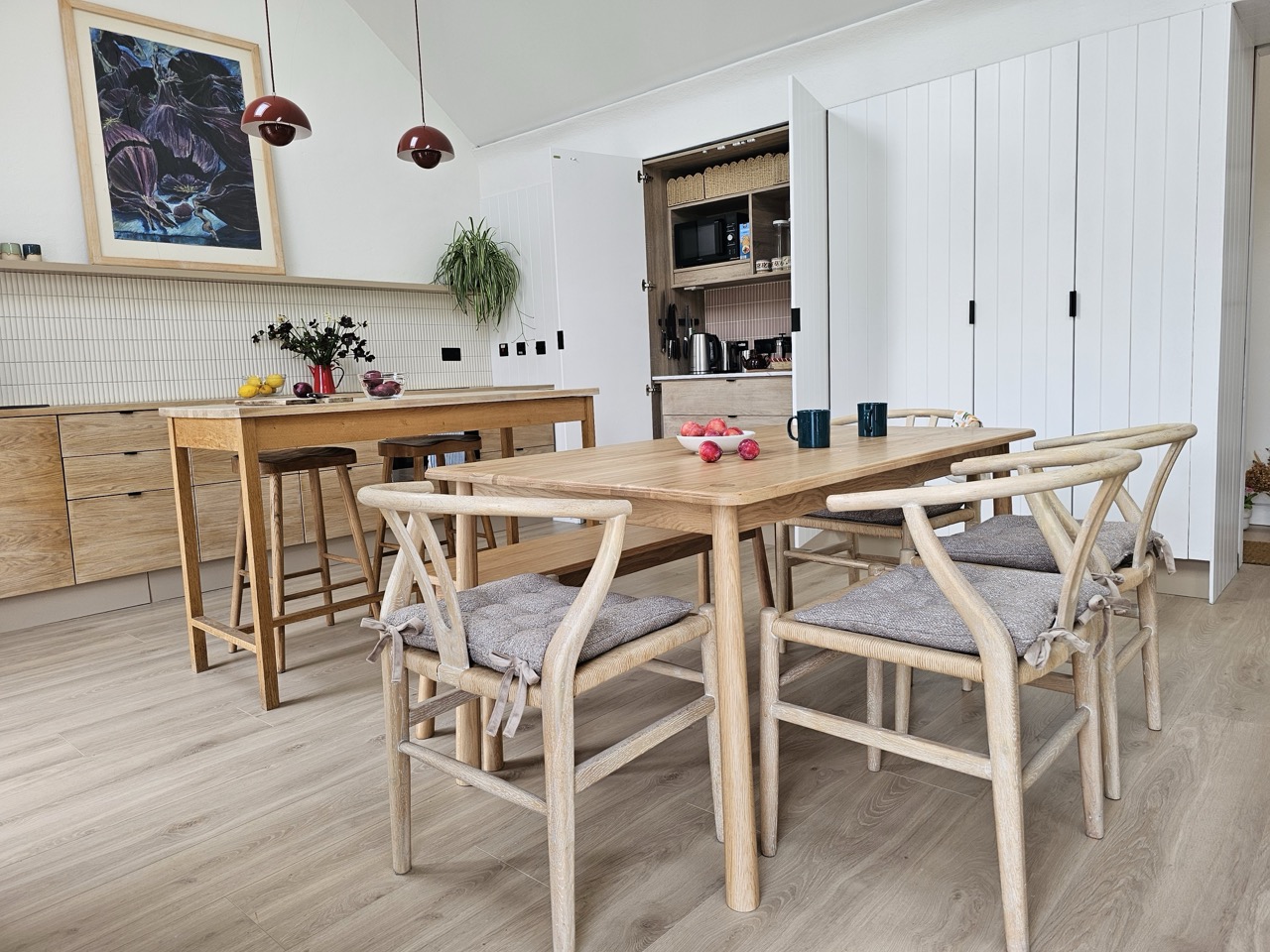 - Kitchen - kettle, toaster, microwave, airfryer, oven, induction hob, French press for coffee and mocha pot, dishwasher