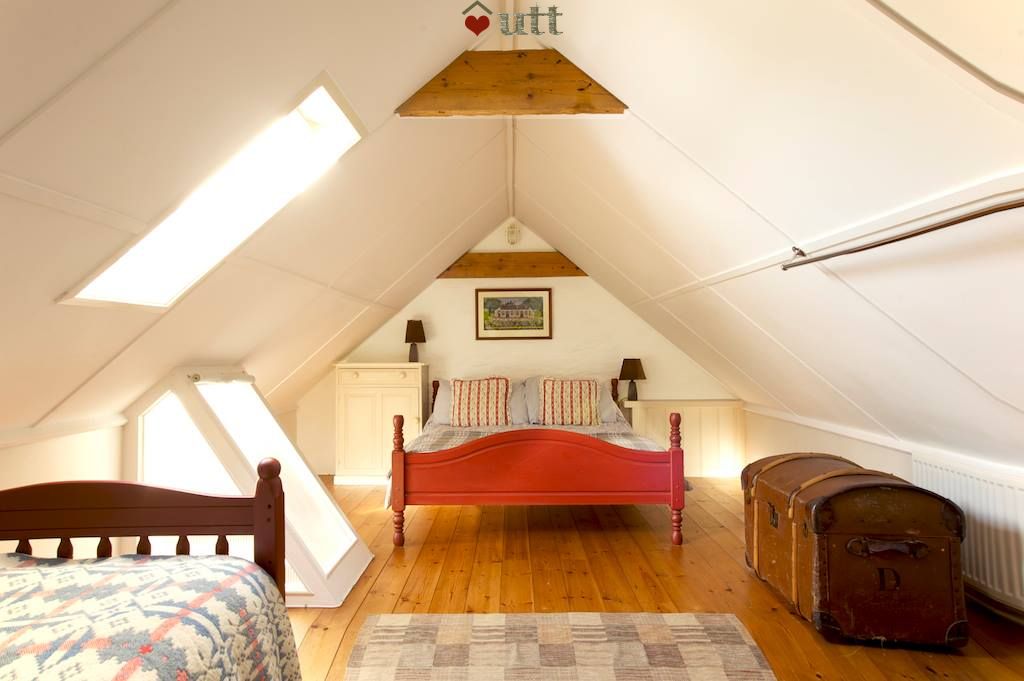 Bedroom 4 is the largest bedroom and has a double bed and two singles. Lit by skylights with views.