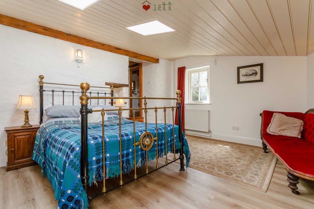 Master Bedroom: Large room with cast iron Victorian double bedstead and 'chaise lounge', just a couple of steps from the bathroom.