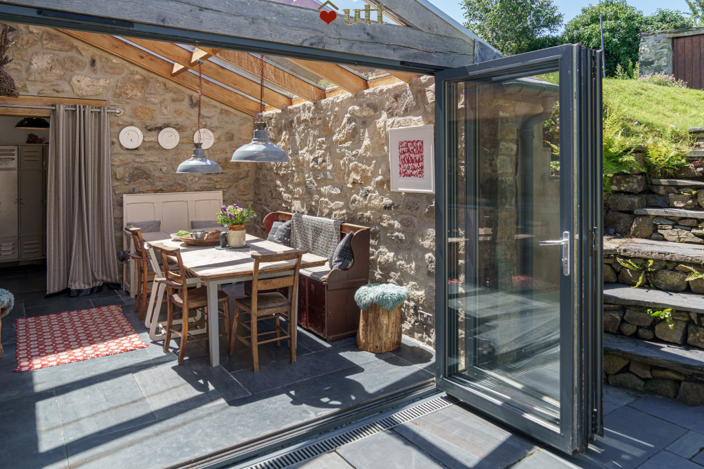 - The Dining area is a new extension (an architectural masterpiece!) with glass and oak roof and full-length glazed bi-fold doors leading directly onto the patio and garden beyond. This is a sun-drenched indoor/outdoor space made for family get-togethers and social occasions!