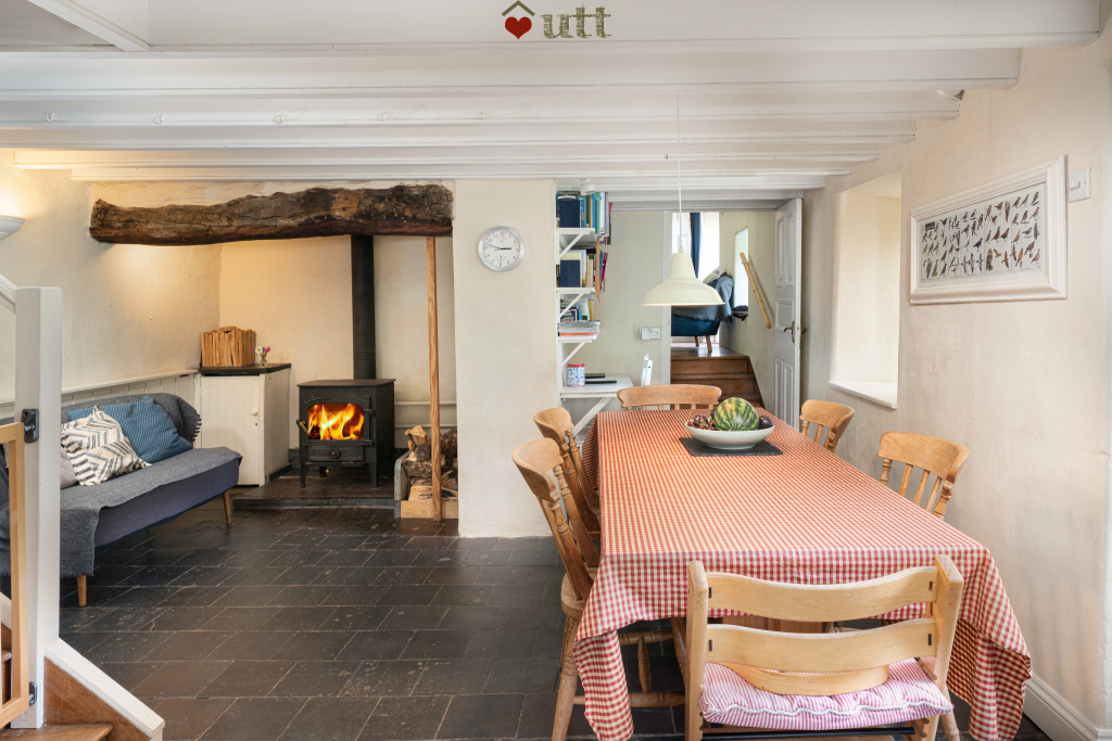 - a little snug area with 17th-century inglenook and wood burner with sofa