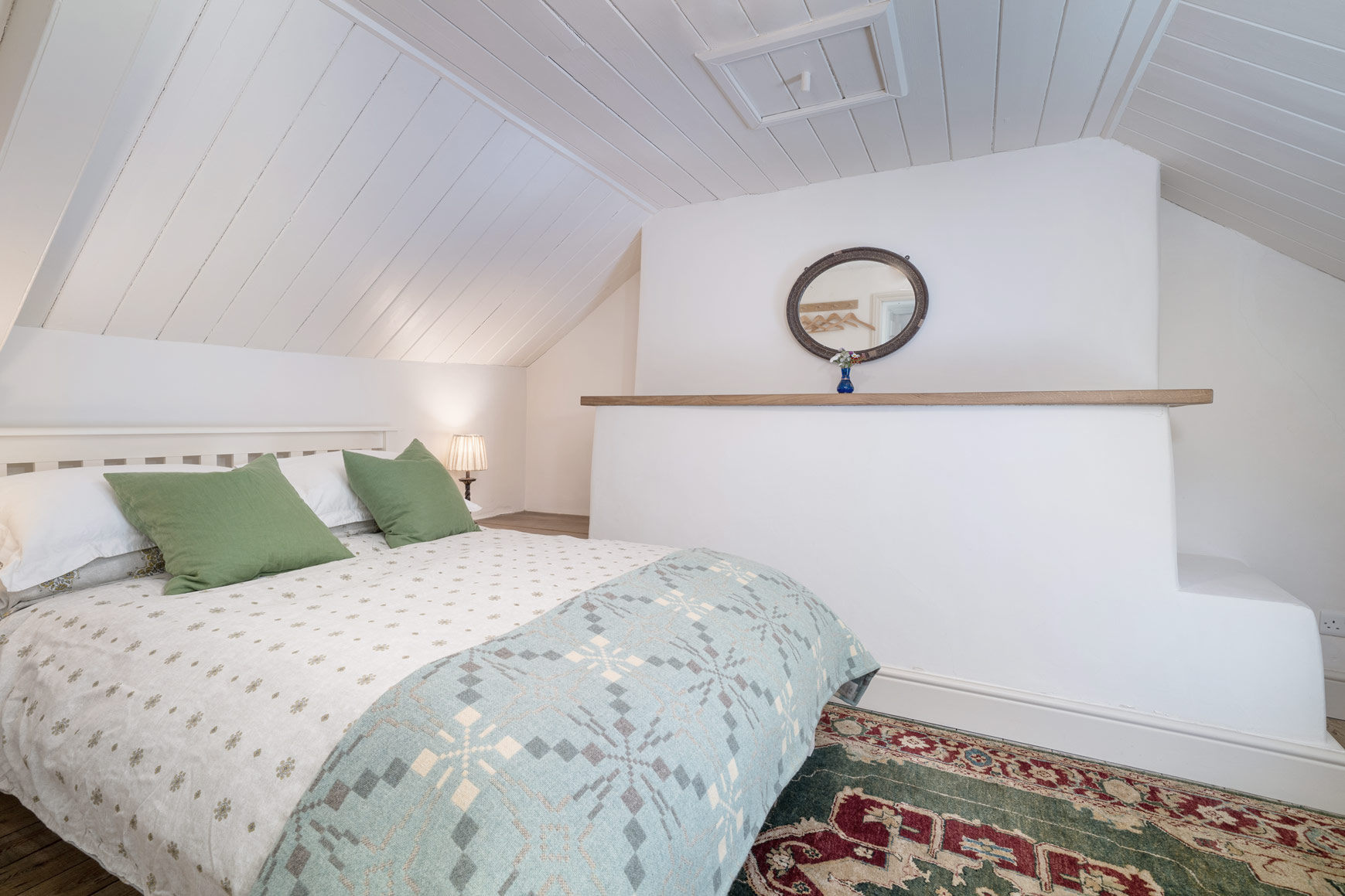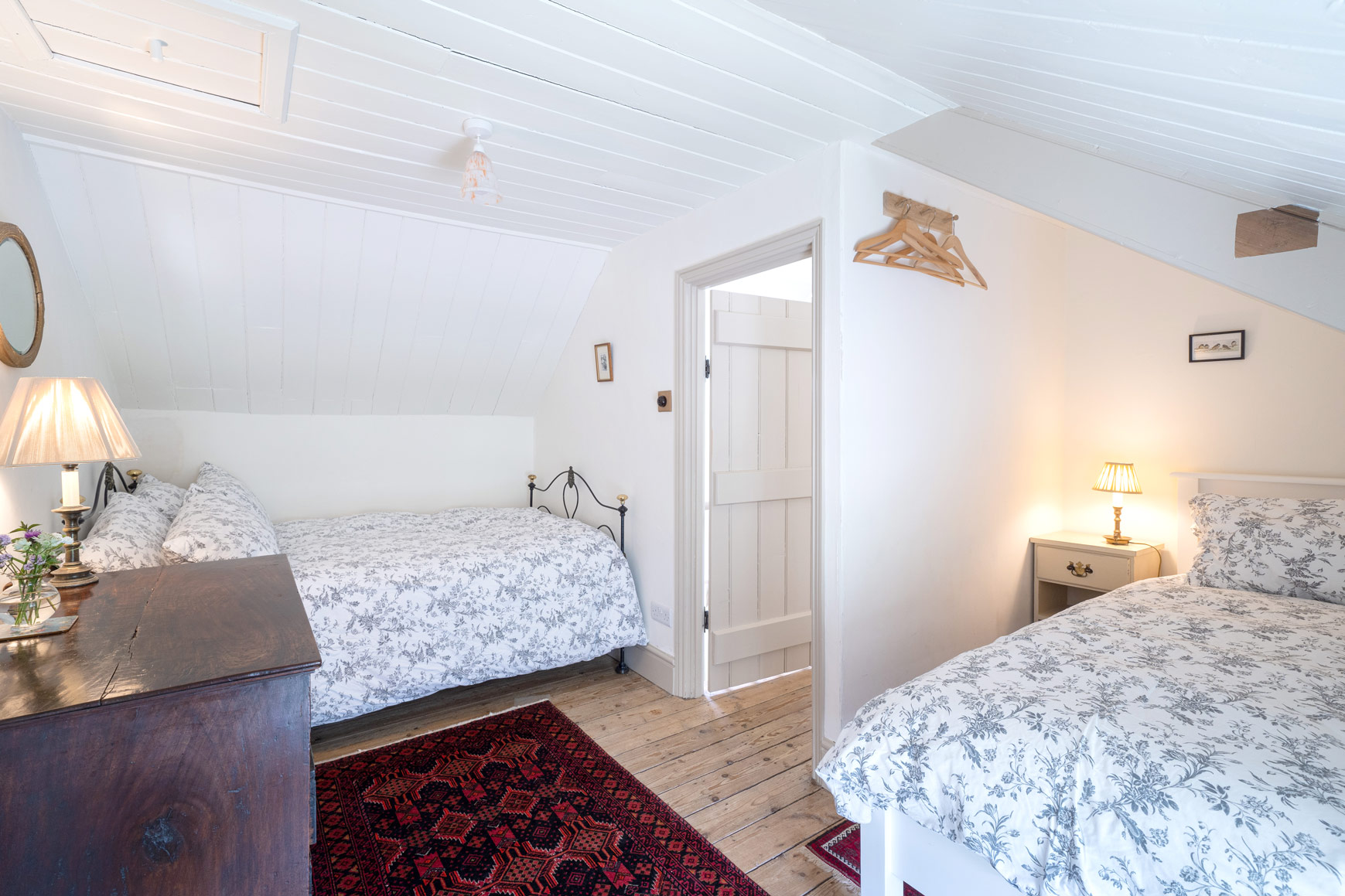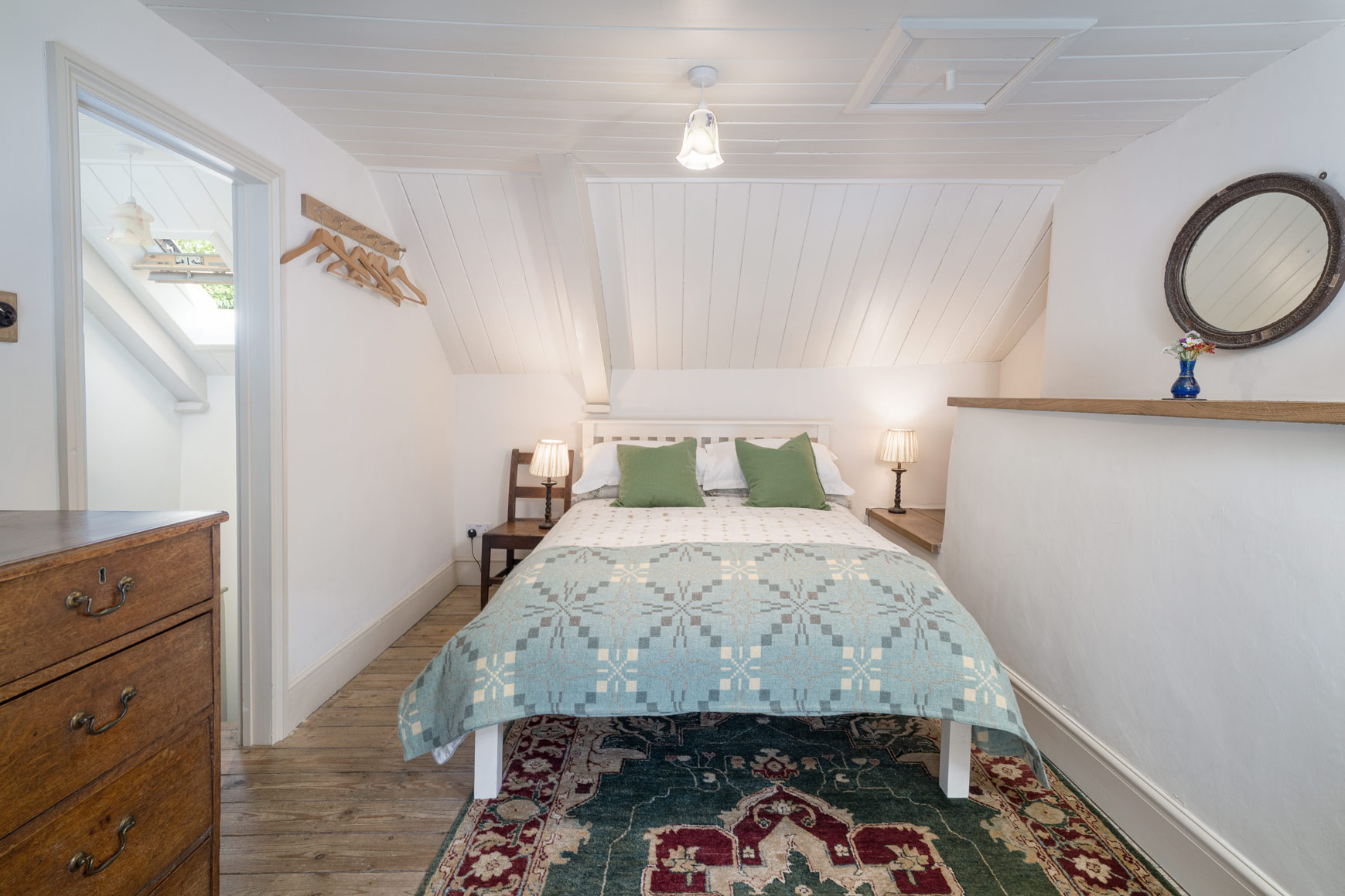 - Second bedroom with 3/4 double bed and separate single bed (in alcove), chest of drawers and shaker style clothes hangers.