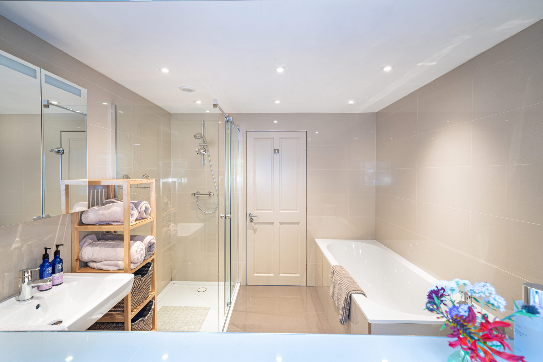 - Spacious,fully tiled Villeroy & Boch bathroom with bath and separate large shower and heated towel rail.