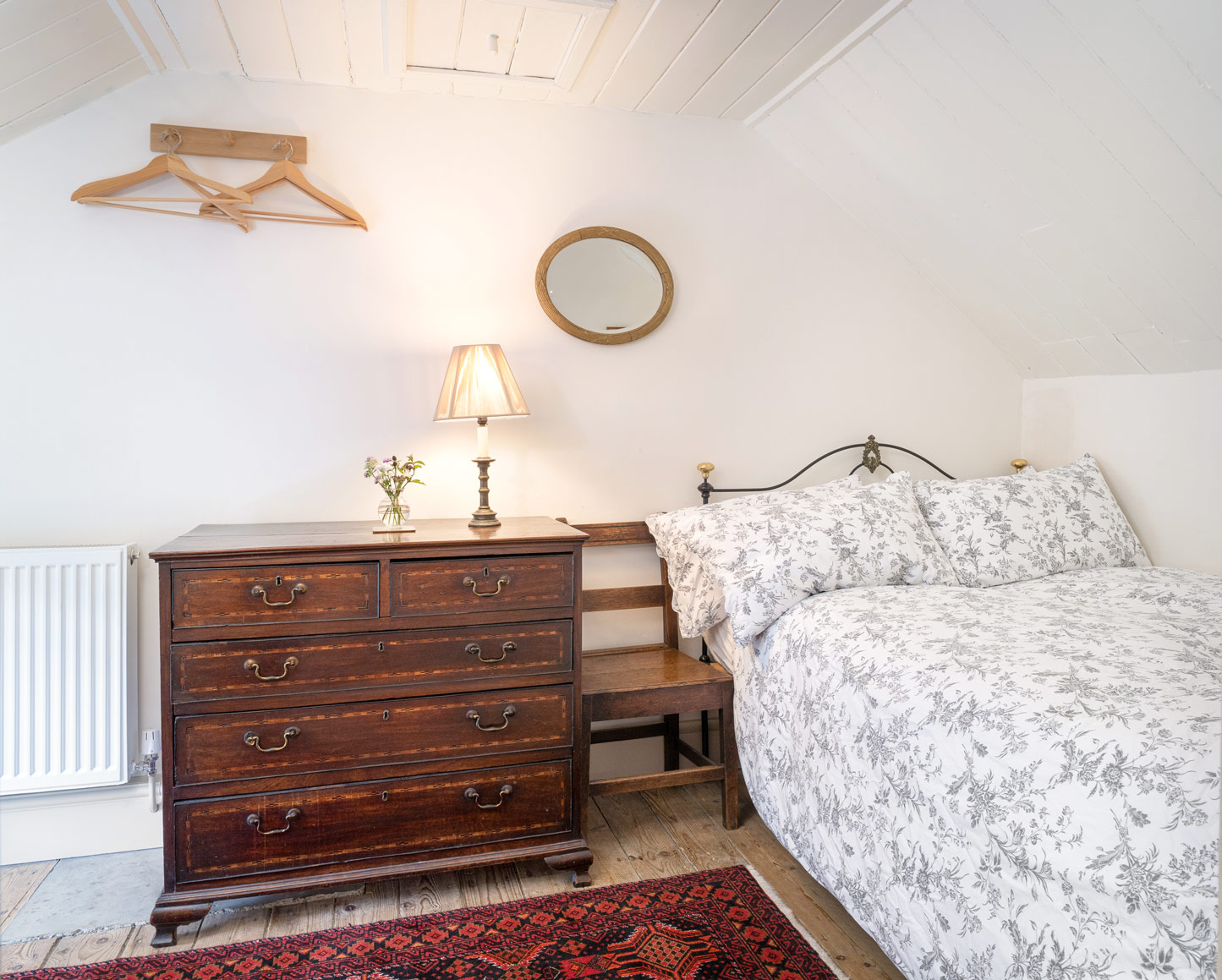 - Master bedroom with double bed, chest of drawers and shaker style clothes hangers.