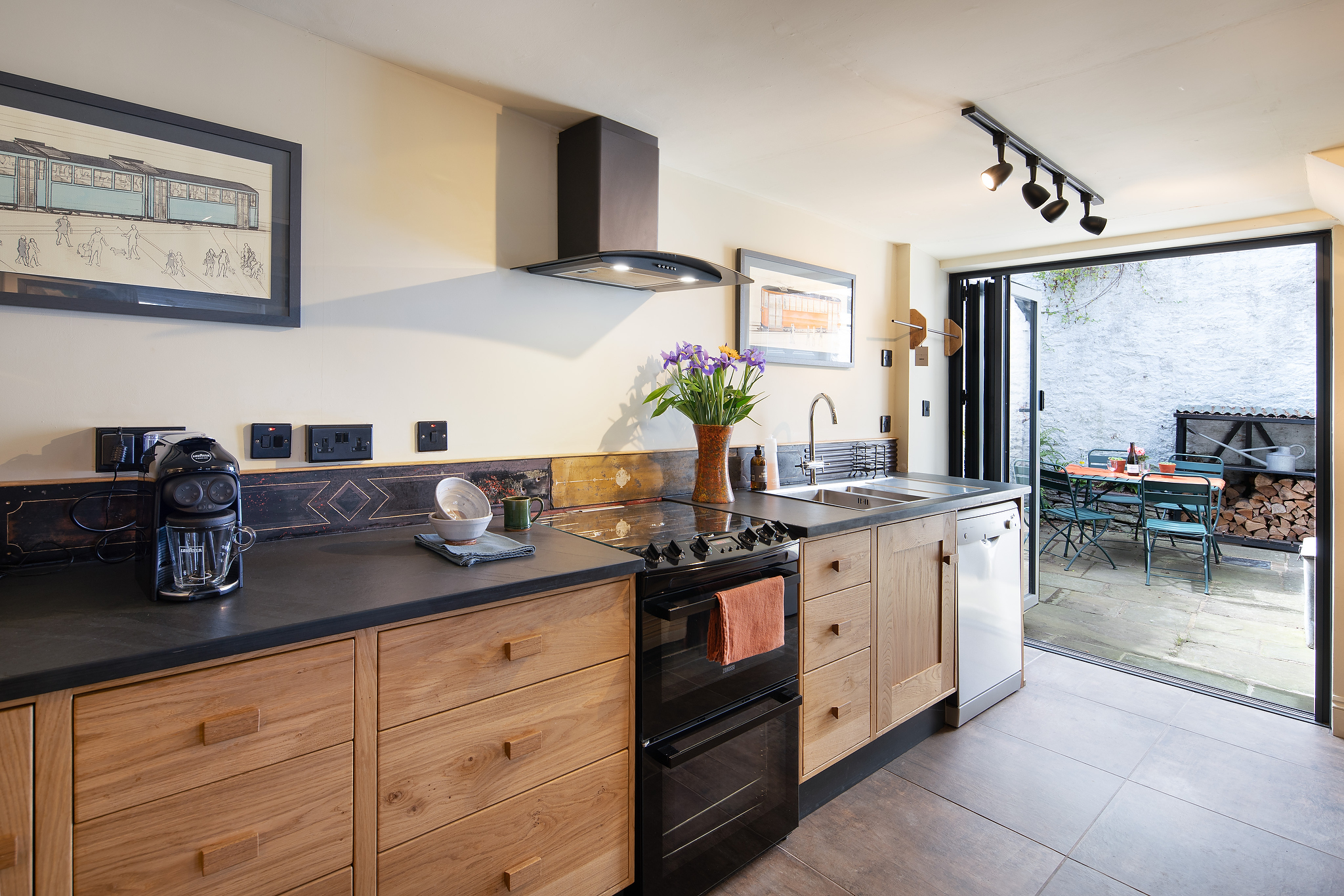 Sleeping four in two bedrooms, and two good bathrooms, plus sofabeds in two further rooms for up to four others, it'd be a great place for friends to come together, do some canoeing down on the river, potter about the shops, and dine out, withour anyone even having to use the (well-appointed) kitchen.