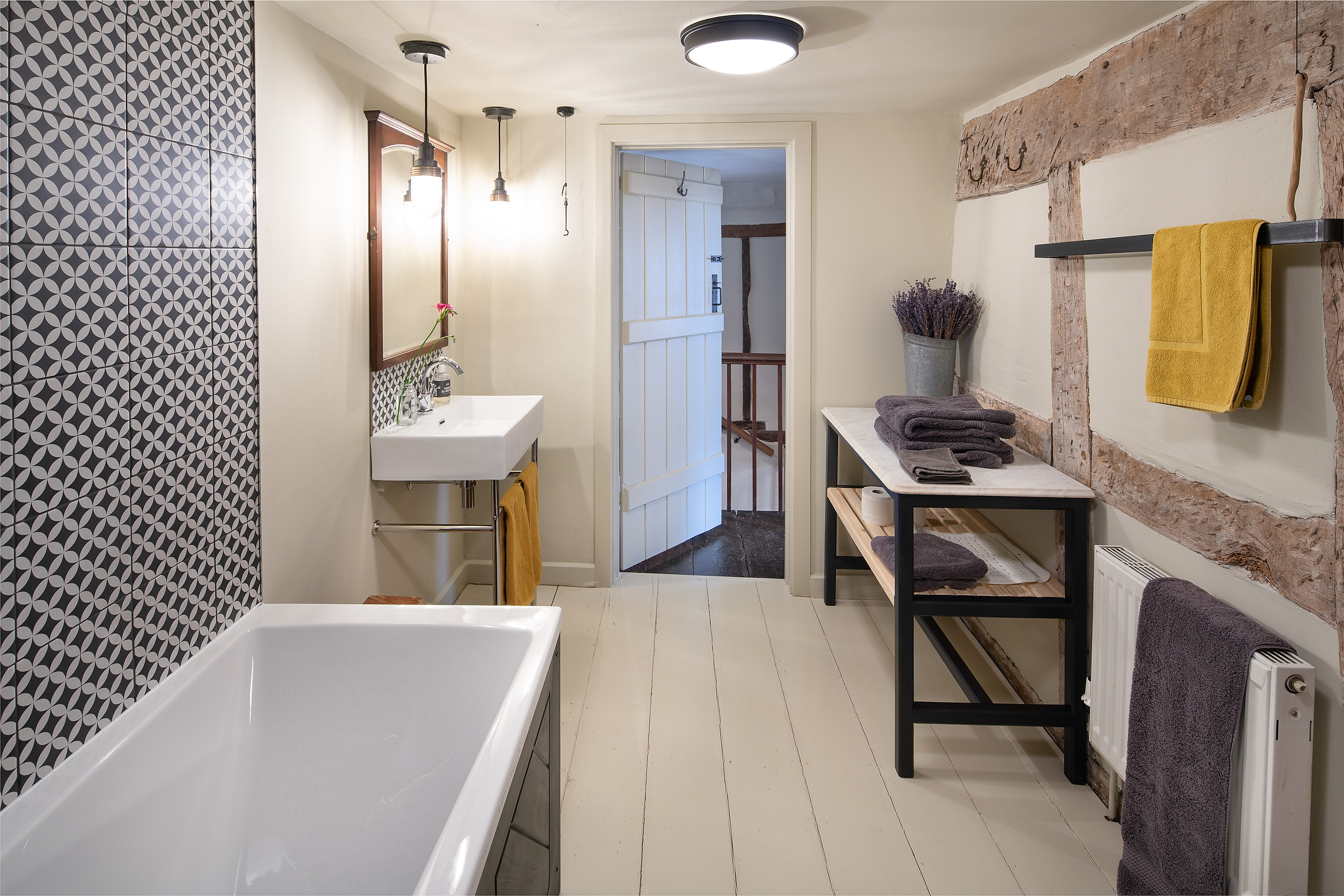 Most likely rebuilt in the seventeenth century on a medieval burgage plot running up to the castle, this beautiful holiday home had a formal rendering of its oak frame in Georgian or Victorian days, and a recent rejuvenation inside to create what we think is simply the best self-catering option in the Hay-on-Wye area. The location is perfect, the interior is gorgeous, and the local owner has dressed the place beautifully with a wonderful art collection and furnishings. Comfortable, tasteful, curated.