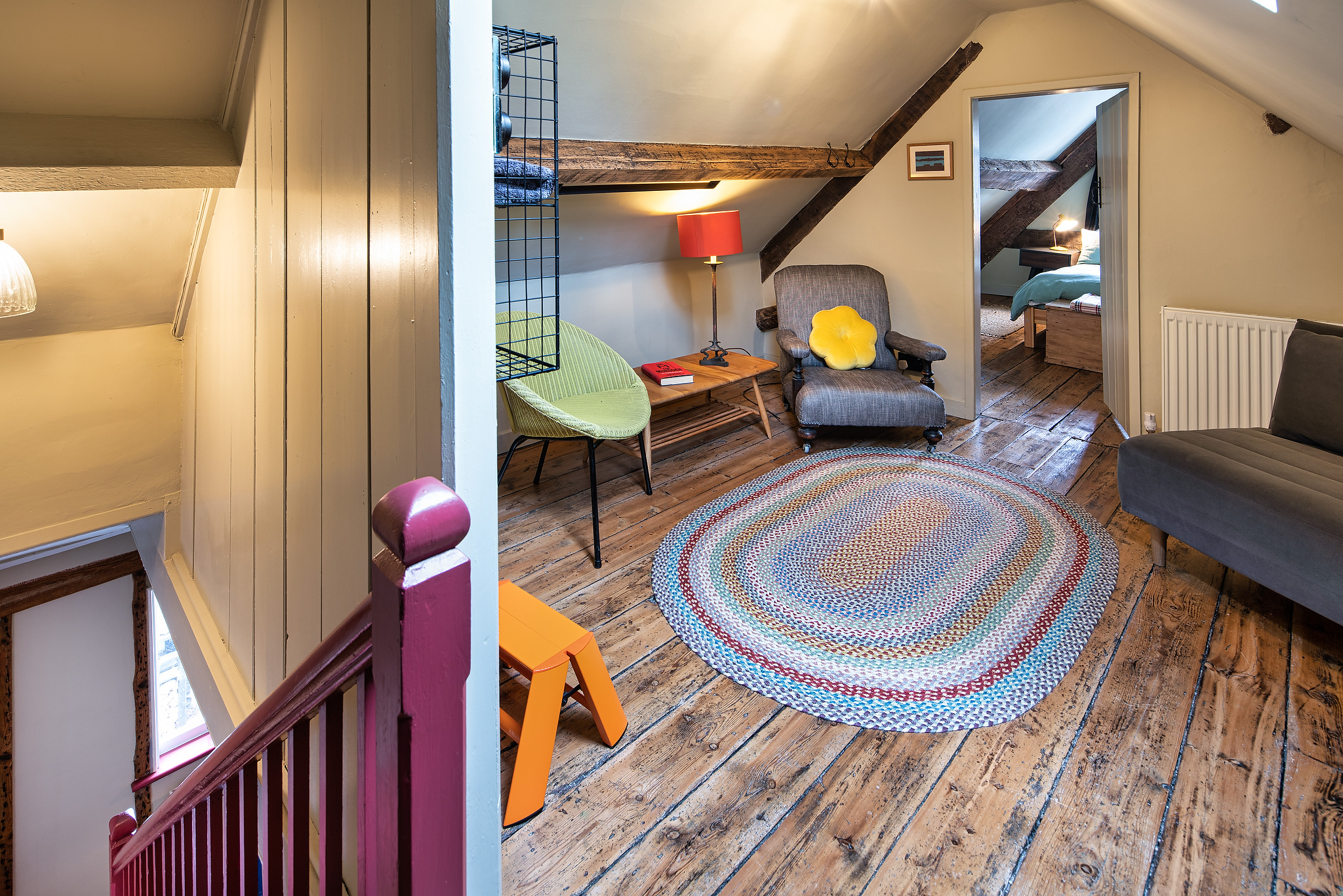 Upper Sitting: a walk-through space to the attic double, also has a pullout sofabed