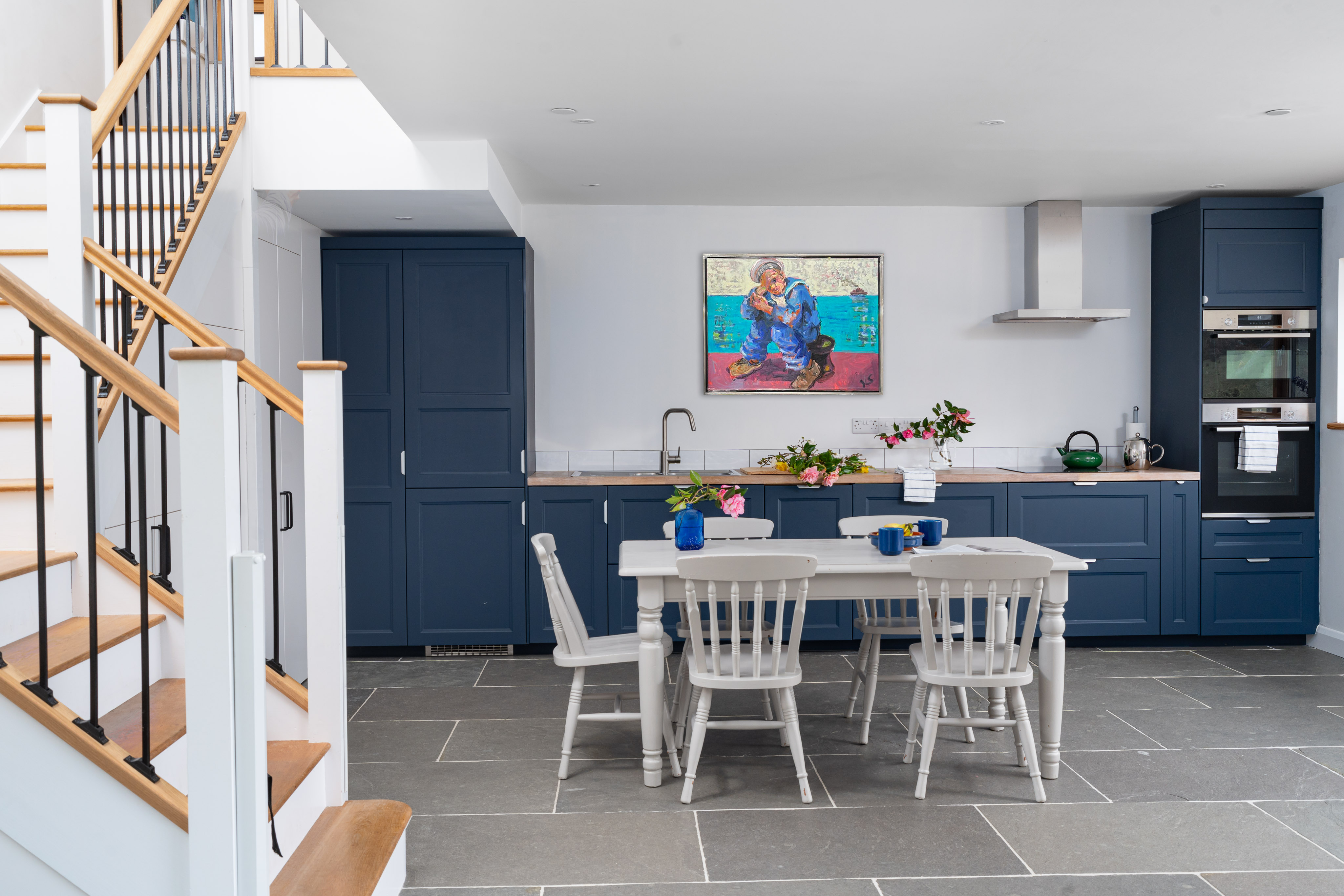 - Kitchen: built in fridge freezer, dishwasher, double oven, and an induction hob, dining table and 5 chairs