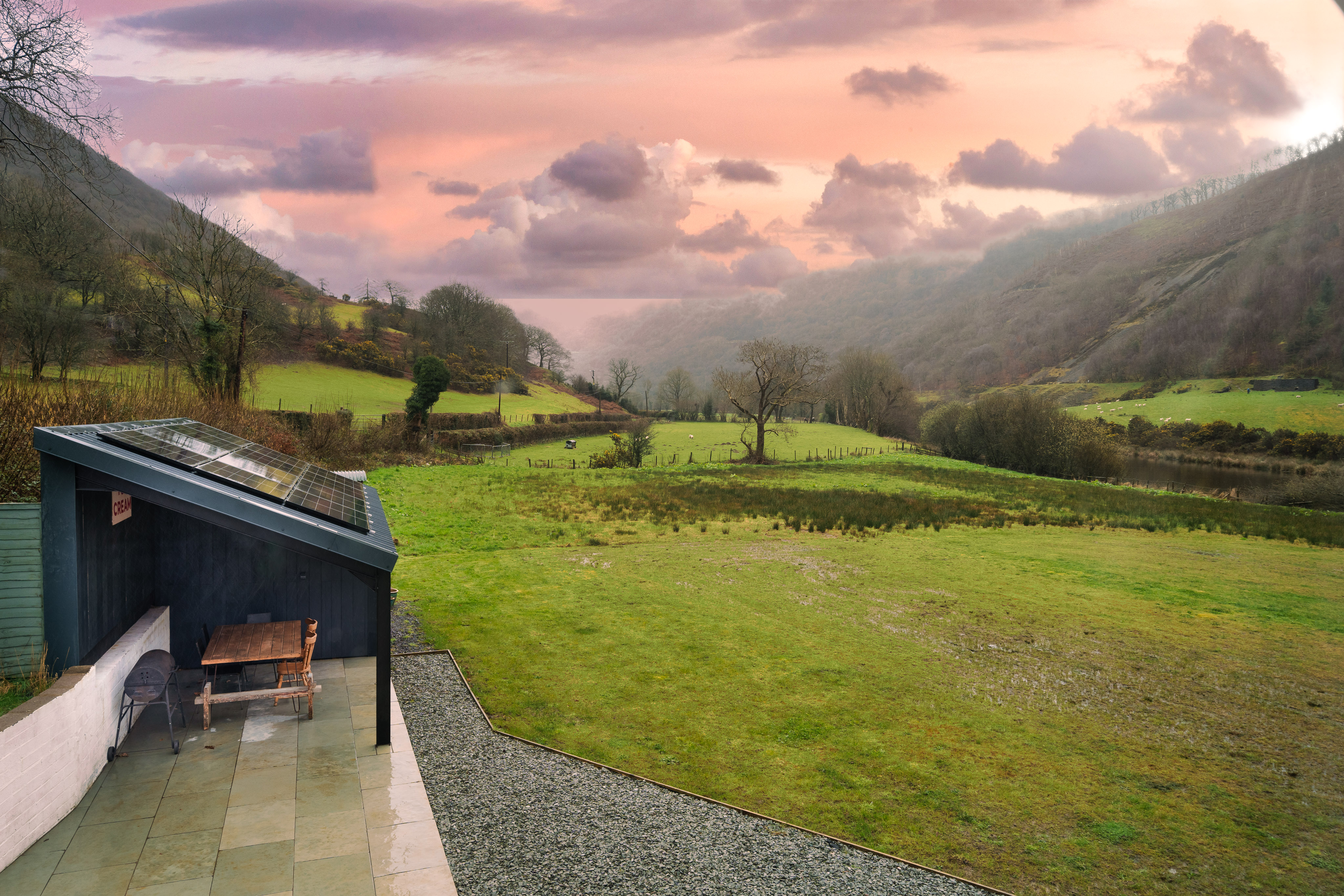 The peaceful Rheidol valley runs from Pontarfynach / Devil's Bridge down to the sea at Aberystwyth, and at the prettiest point you'll find a series of waterfalls. Approximately in the middle of the numerous stages of falls you'll find Penffrwd Fach - a brand new riverfront property built to a high standard, and with sustainability at its heart.