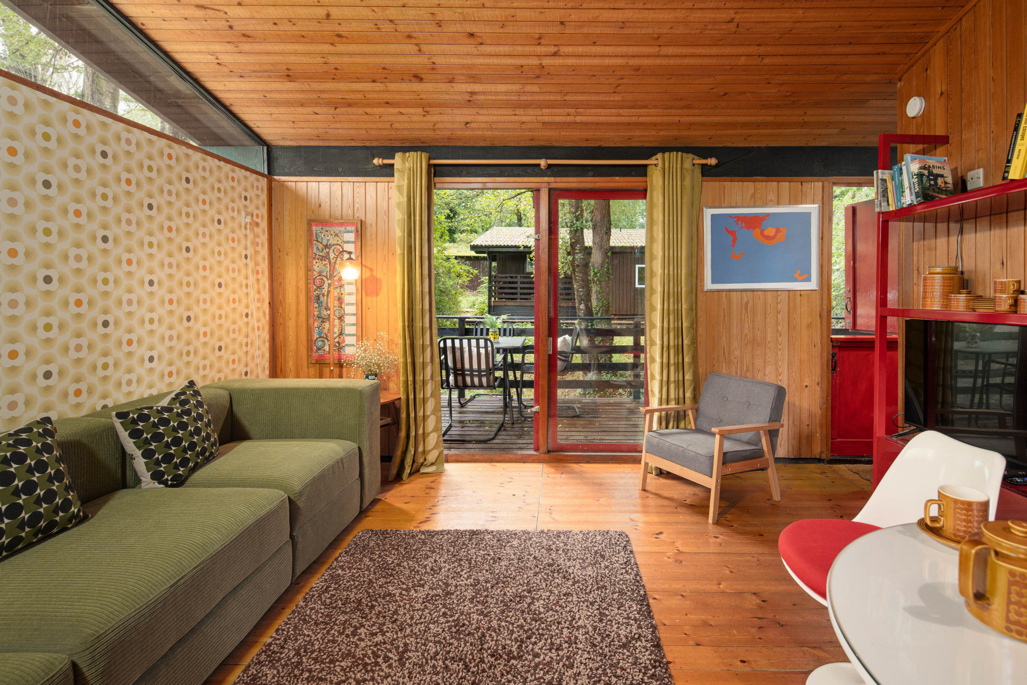 Full of quirky charm this small cabin is ideal for couples or families that don't mind 1970s-scale living, and your dog is welcome too! There's a double bedroom and bunk, a small shower-room and a comfortable lounger.