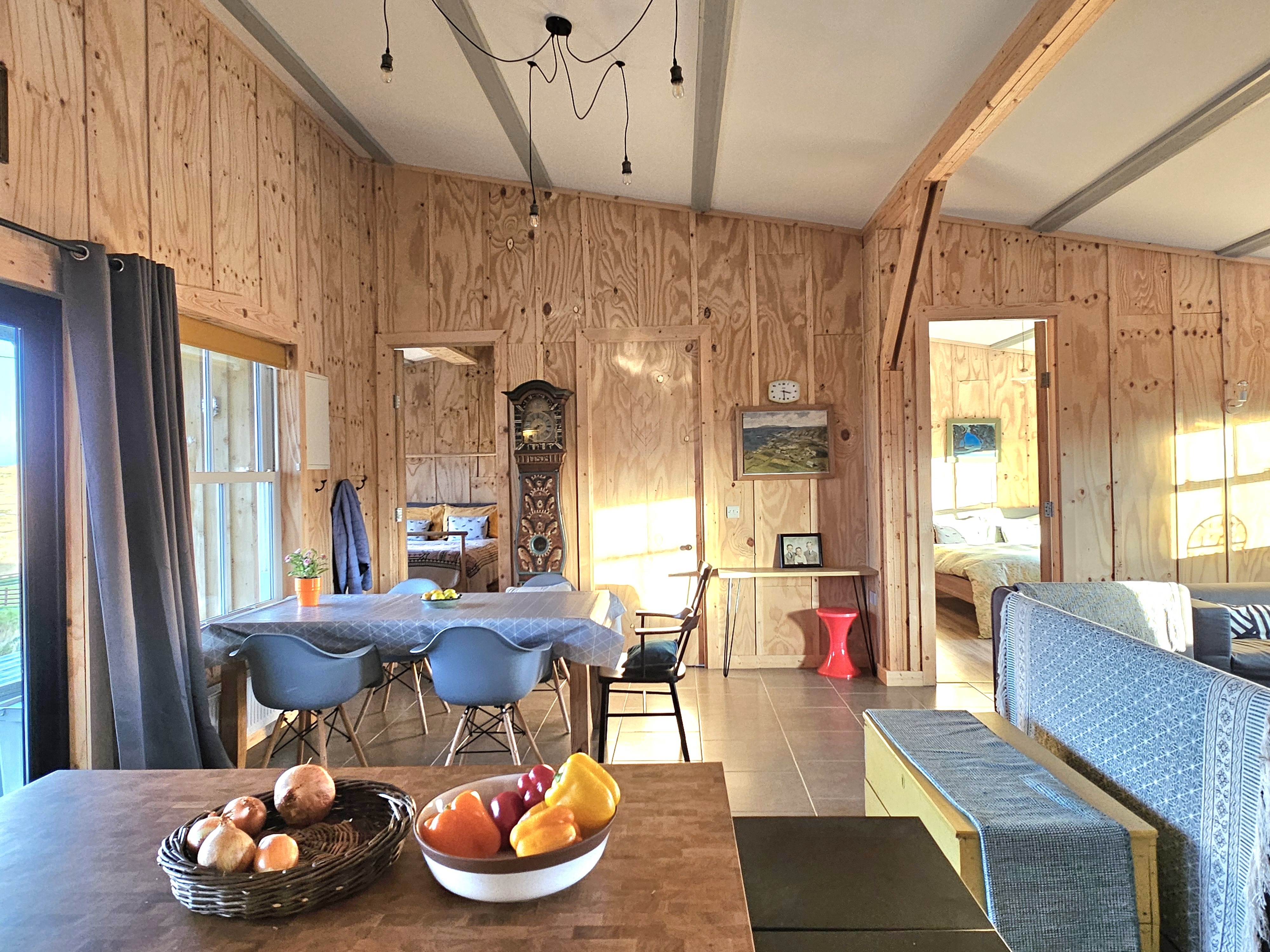 The 3 bedroom, 2 bathroom new home is inspired by timber Tasmanian beach homes, but this one is fully insulated beyond modern standards and very comfortable all year round with central heating and a fireplace.