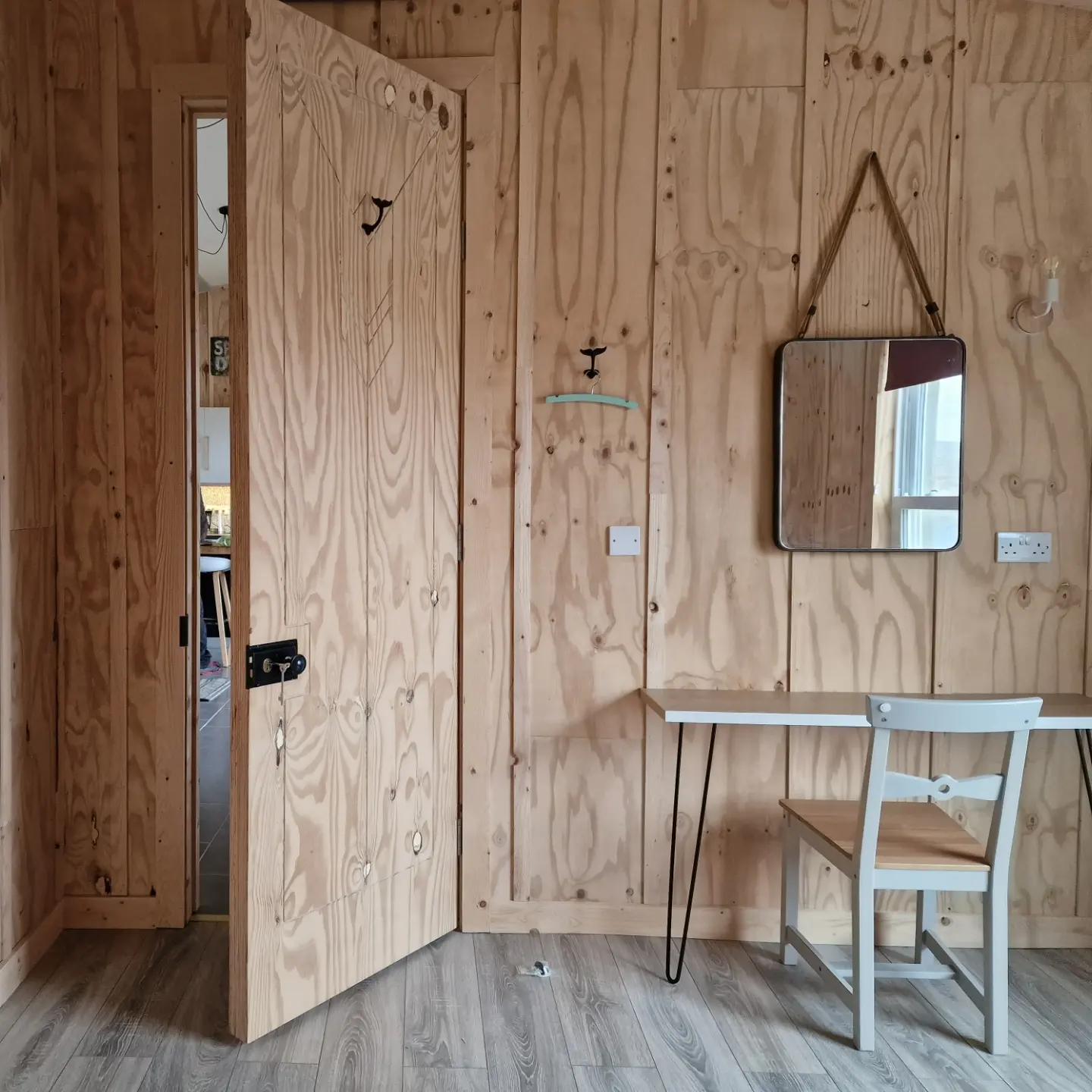 • Note there is a 20 yard walk along a gravel footpath from the parking to the property and up two steps to get onto the decking, then all one level inside.