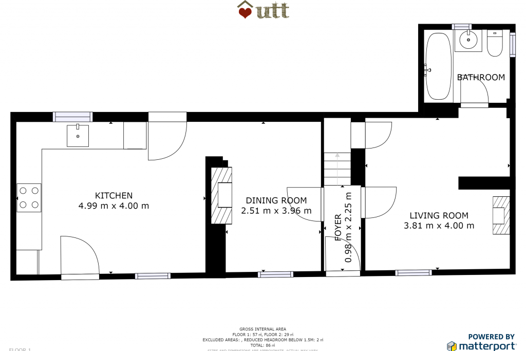 Kitchen: Rayburn stove (solid fuel) initial basket of logs provided. Fridge-freezer and hob and electric oven. Microwave, toaster. Filter coffee machine for ground coffee and stove-top espresso maker. Doors to outside. Hot water is via oil boiler, not Rayburn.